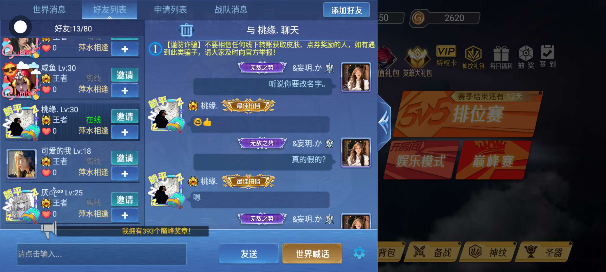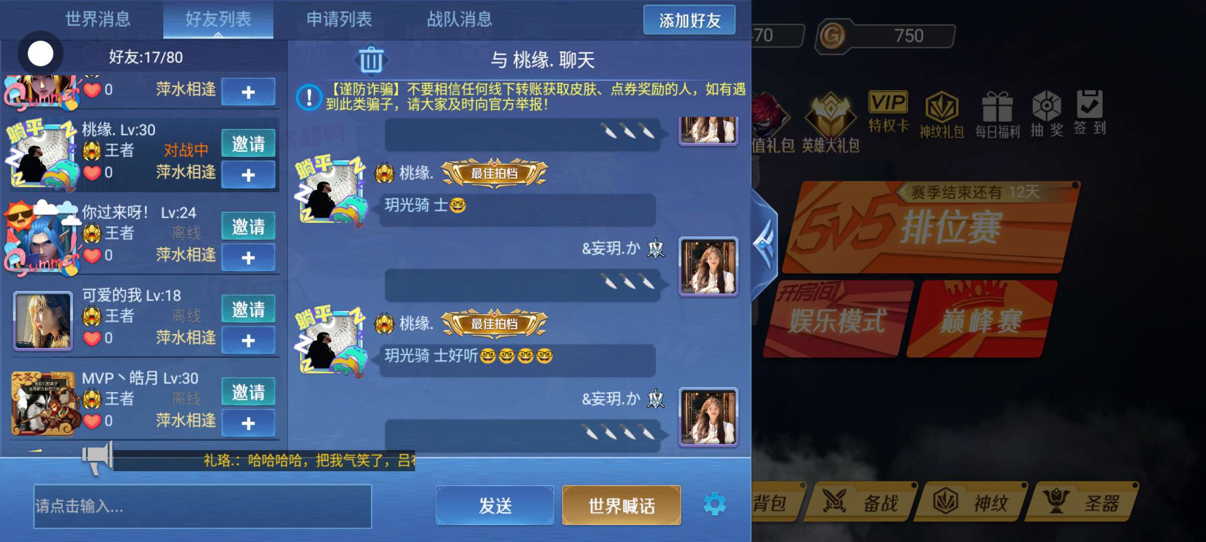 遇见这个人远离。天天取外号。还骗人叫爹。看好他的ID和他的名字。