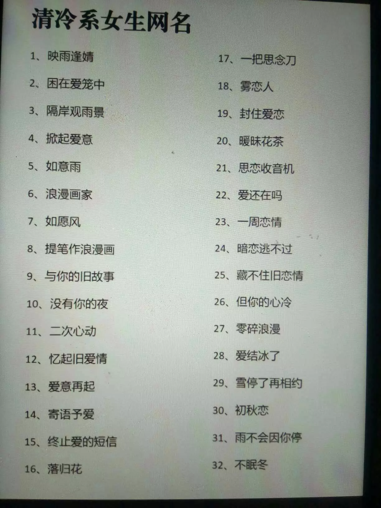 清冷系女生网名。