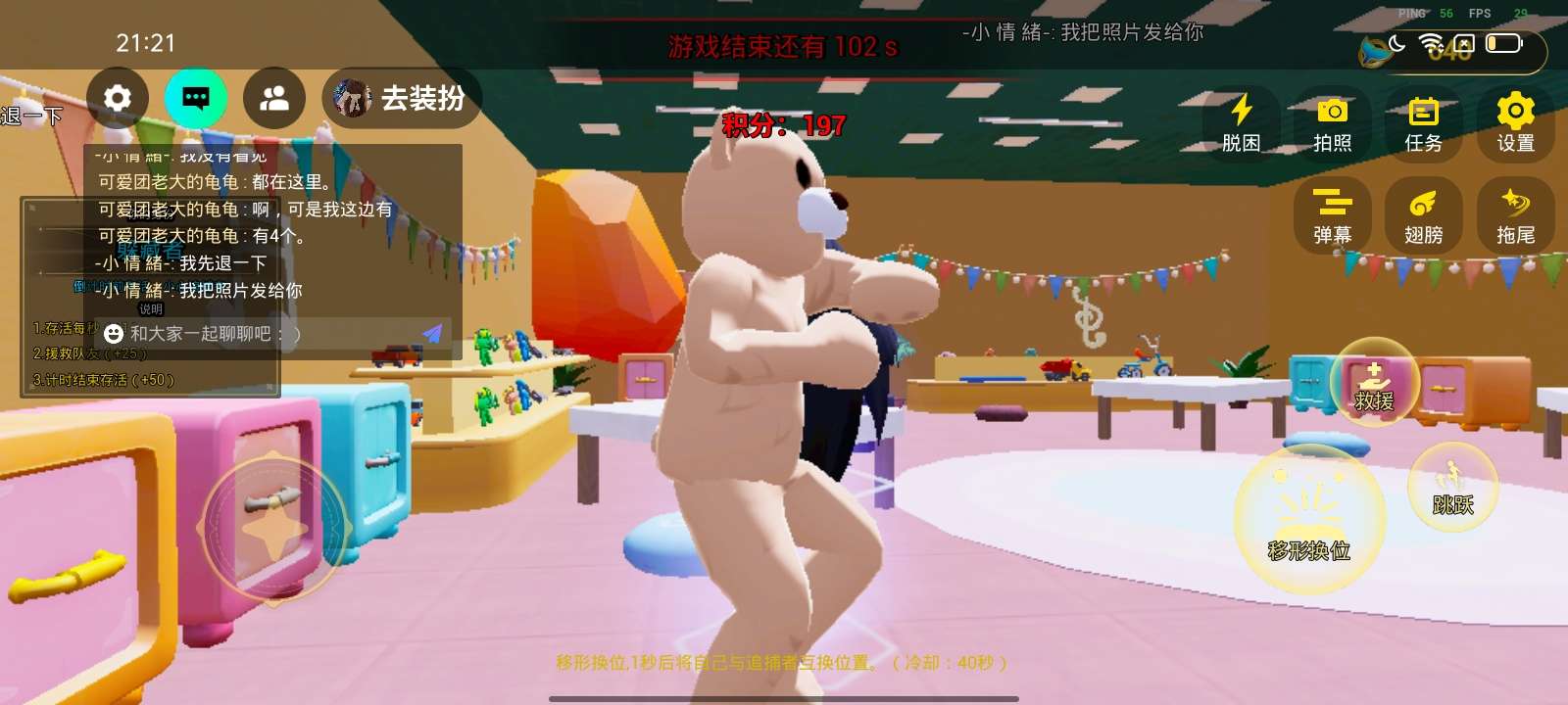 卡bug了,和朋友玩,我朋友说他把躲藏者击倒了,我这看不见。