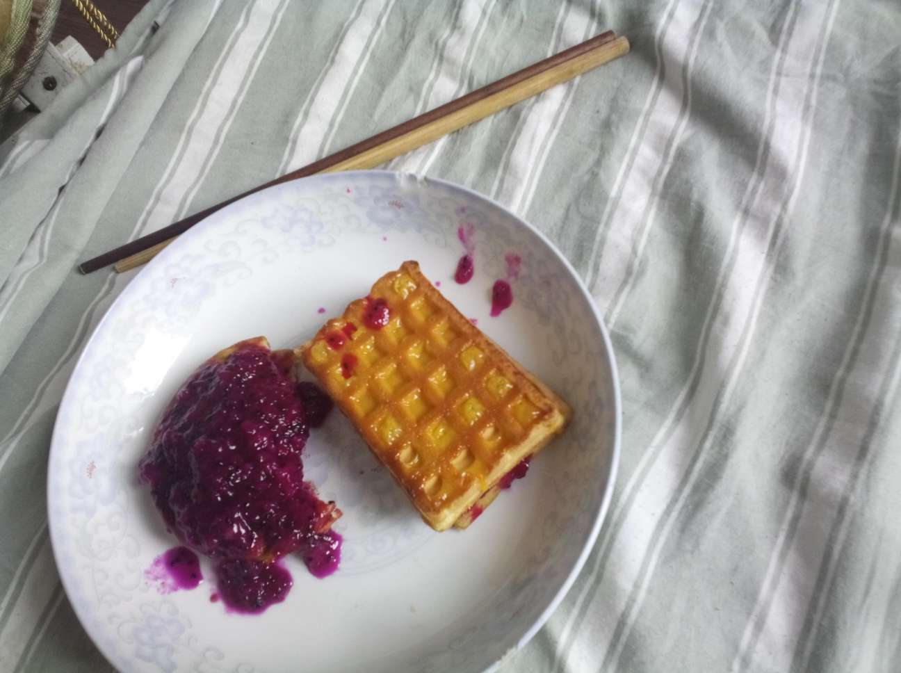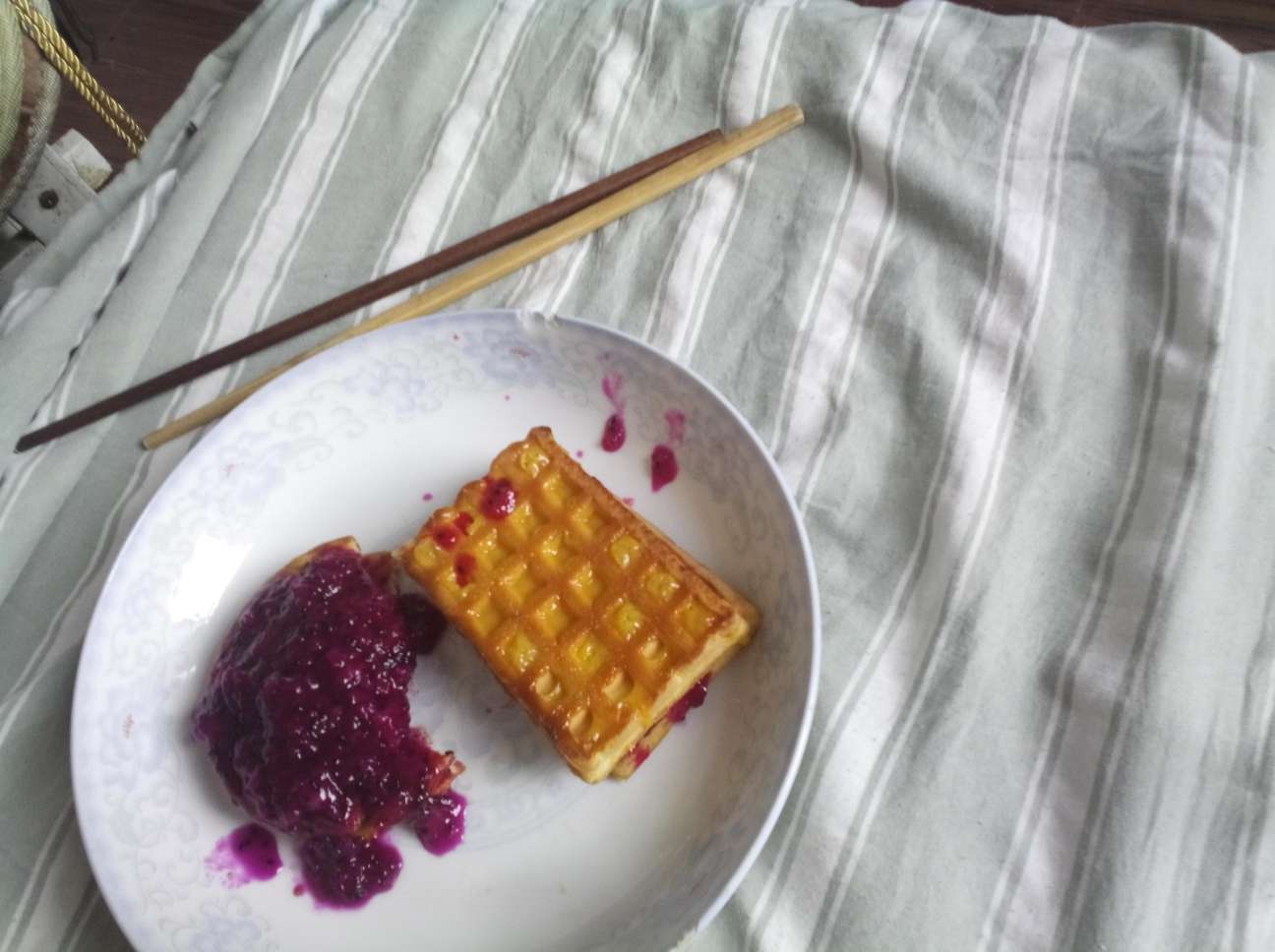 我已经吃饭了。自制面包站战果酱。