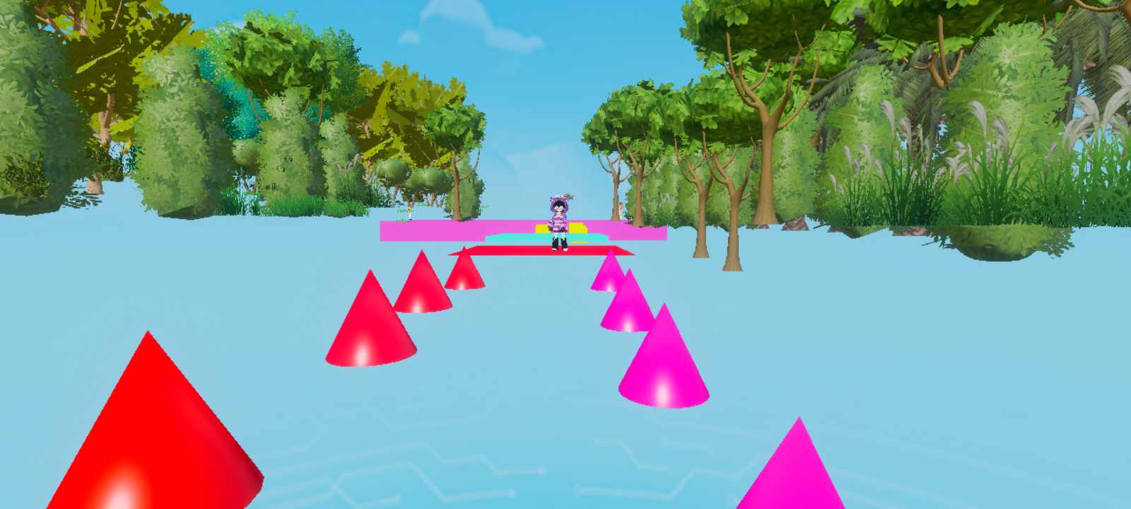 一进这地图,那色彩简直太亮眼啦!绿色的树、五彩的花,各种颜色疯狂组合,就像把彩虹揉进了地图里。而且这些颜色搭配得特别和谐,绿色的树衬着粉色的花,就像天然的CP,怎么看怎么舒服,眼睛一下子就被狠狠吸引住,感觉自己像走进了一个奇幻的彩色王国,每一处景色都像是精心绘制的艺术画作,让人忍不住驻足欣赏