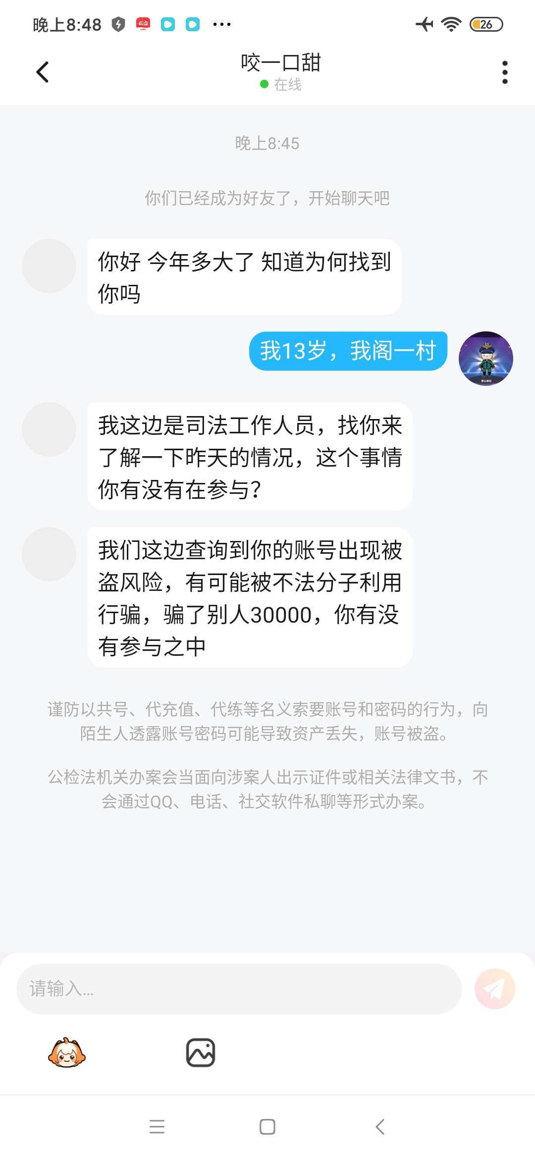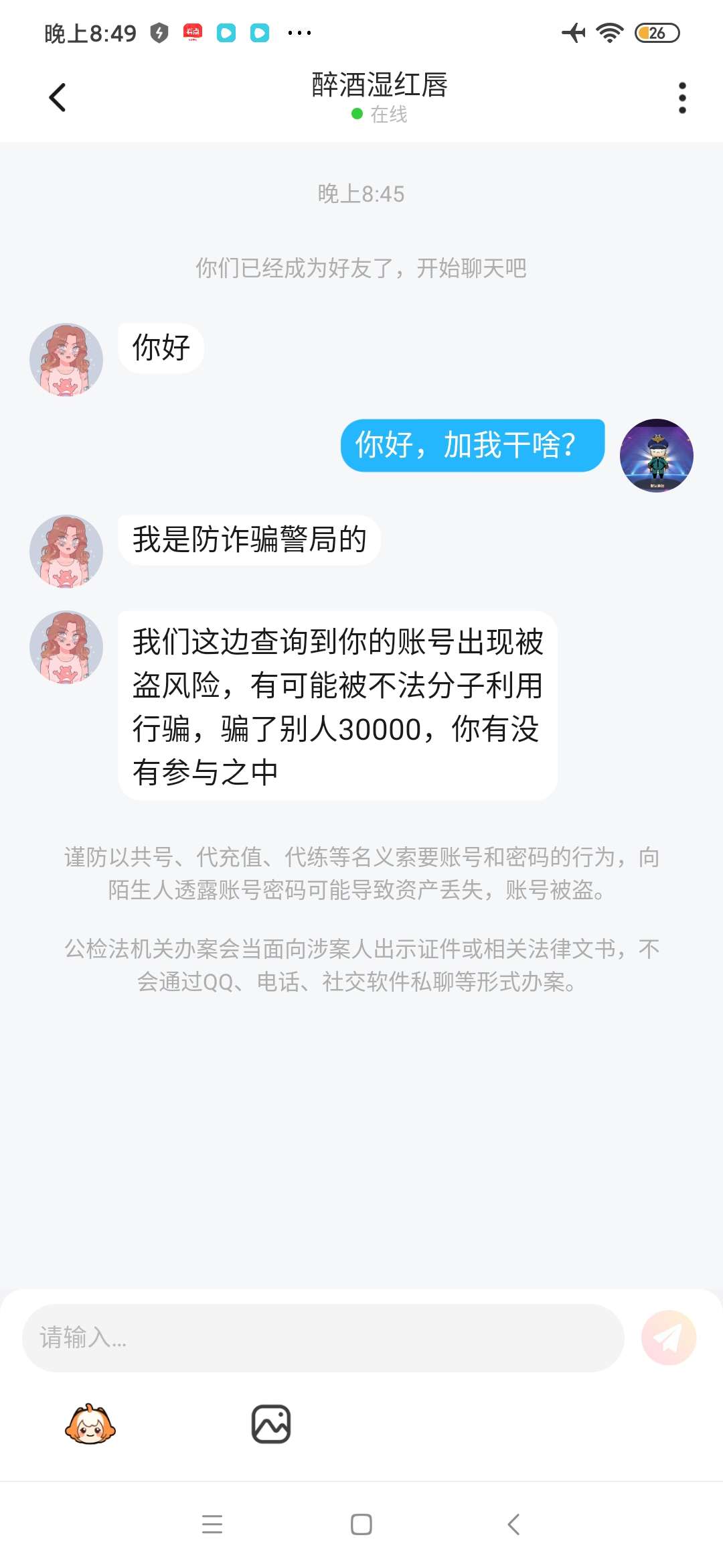 ,另一位好友骗了我帐号和密码,她试在我面前输入