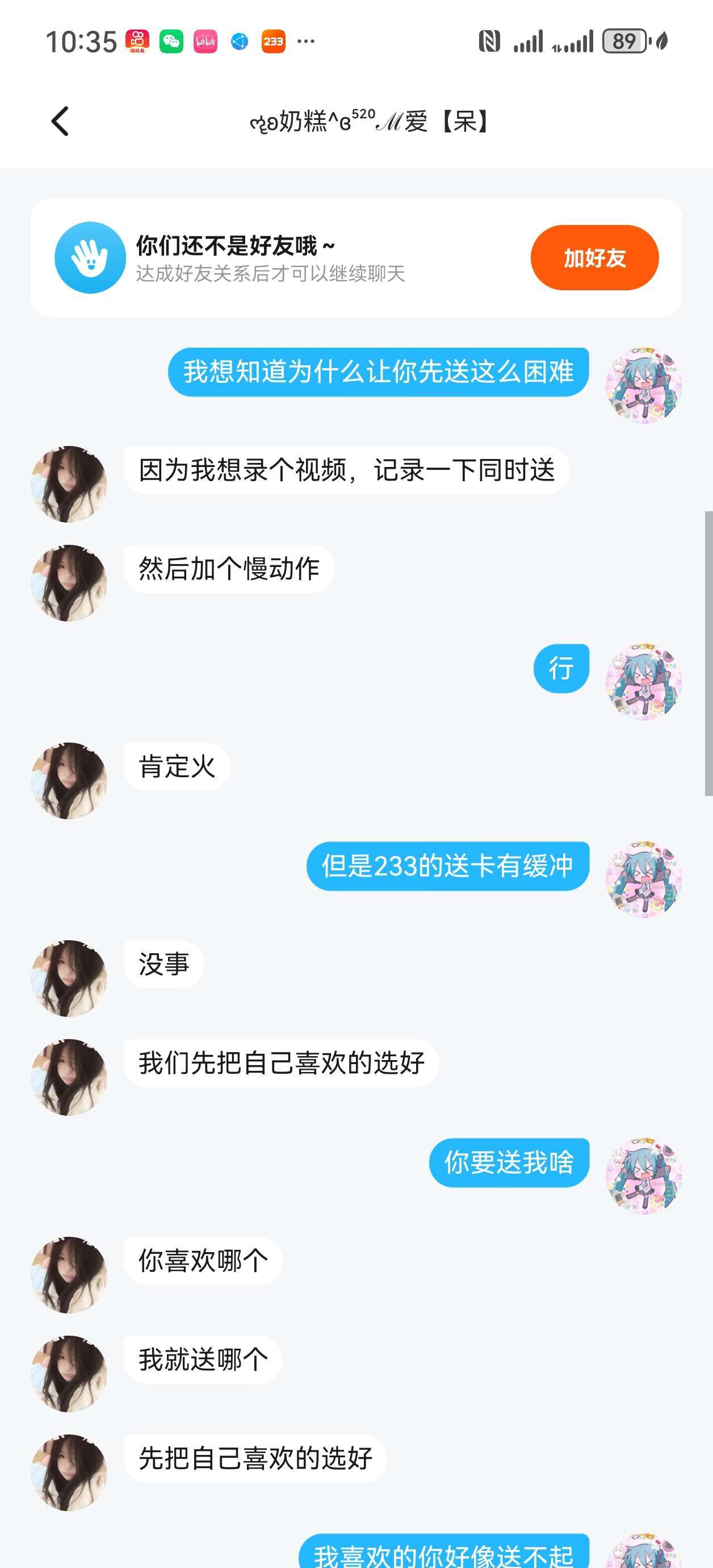 如图 这人先是说互送,在我送了之后称〝明天送今天没有🥕了”,主播觉得没钱是人之常情也就允许了明天送。结果第2天,这位大仙儿依然我行我素要求我先送。并且称“想录个视频〞。321倒数拿到礼物之后果断拉黑跑路!!!加起来我送的礼物将近1000币,大家避雷骗子!也希望233出一个被拉黑之后还能举报的功能!主播证据很充分,只是废话有些多,这里放不下。怀疑主播的我可以发证据!大家一定要保护好自己钱财呀!!#霸道亲友爱上我 #猜猜我是谁—清空你的心愿单 #逆天操作