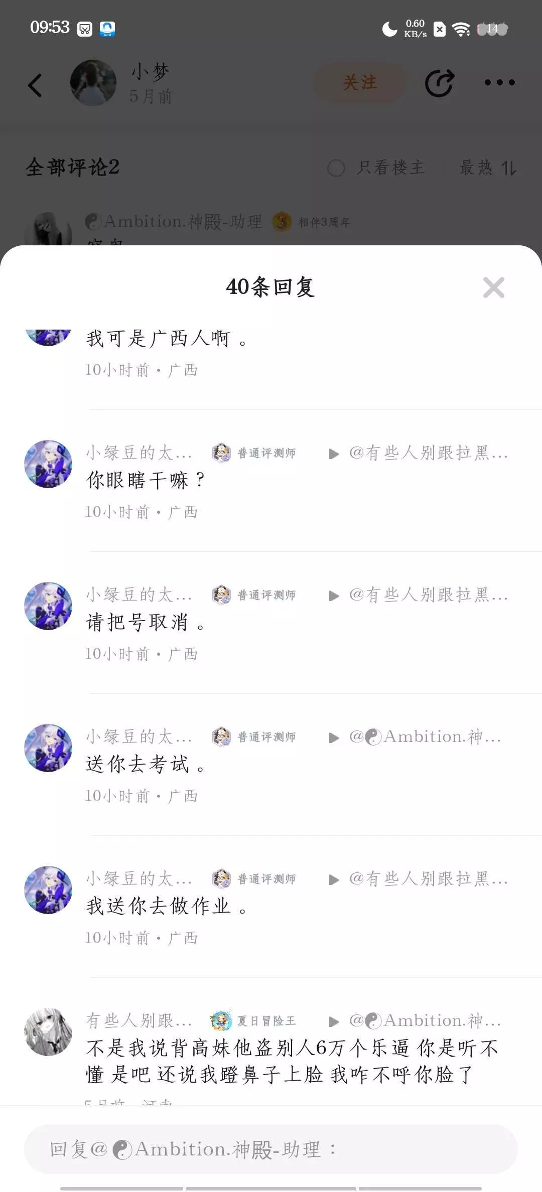 啊,你是没妈生没妈养的,是不是那6万乐币又咋的?你要给橘子海吗?啊,你觉得6万乐币等于多少钱?你这个小屁孩,还让我做作业,那6万乐币就等于6000块钱,你你知道那是什么概念吗?真牛逼哈,而且这件事好像跟你无关哎?