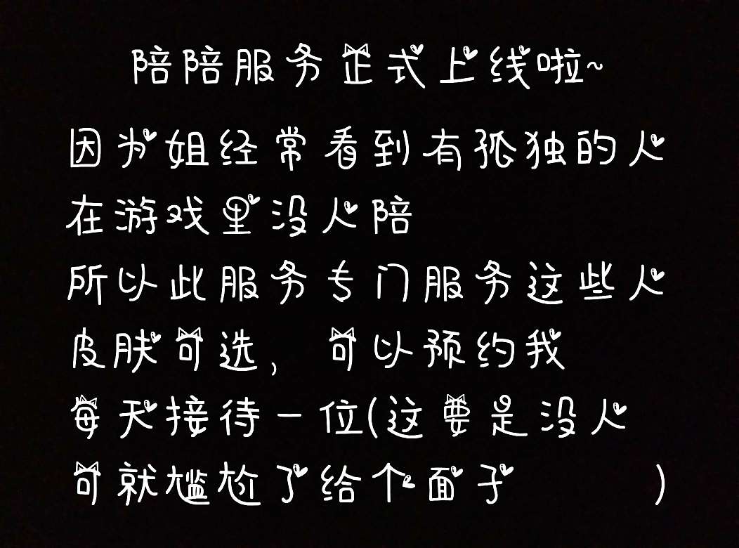 嘻嘻嘻,陪陪服务正式上线(≧∇≦)/(好激动,可以陪好多人玩)