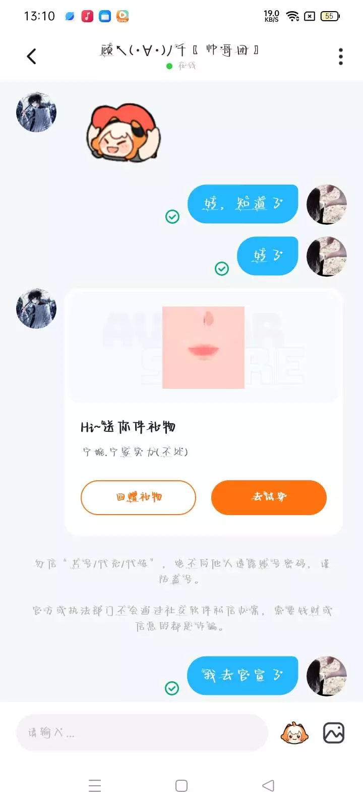 接捏脸,要1个礼物。