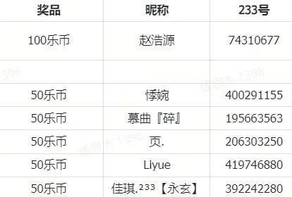 (2)乐币奖励:乐币将在公示期结束后15个工作日内发放至对应乐园账户,届时请注意乐币账户变化