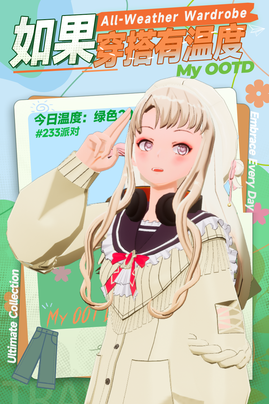 好不容易创造的穿搭。