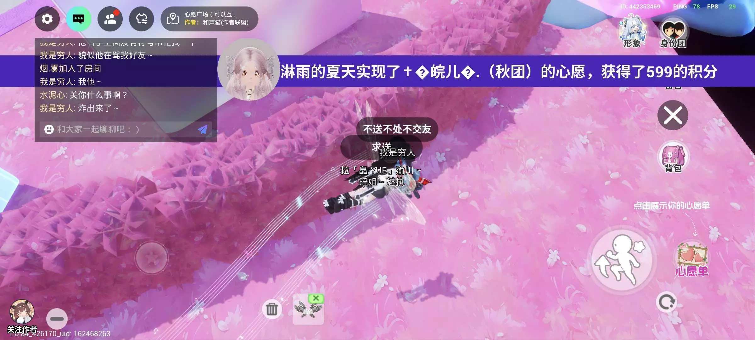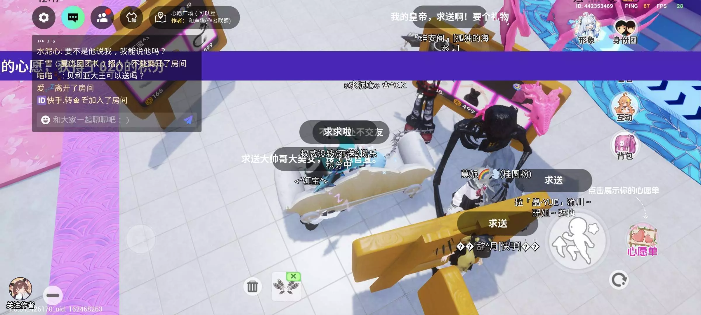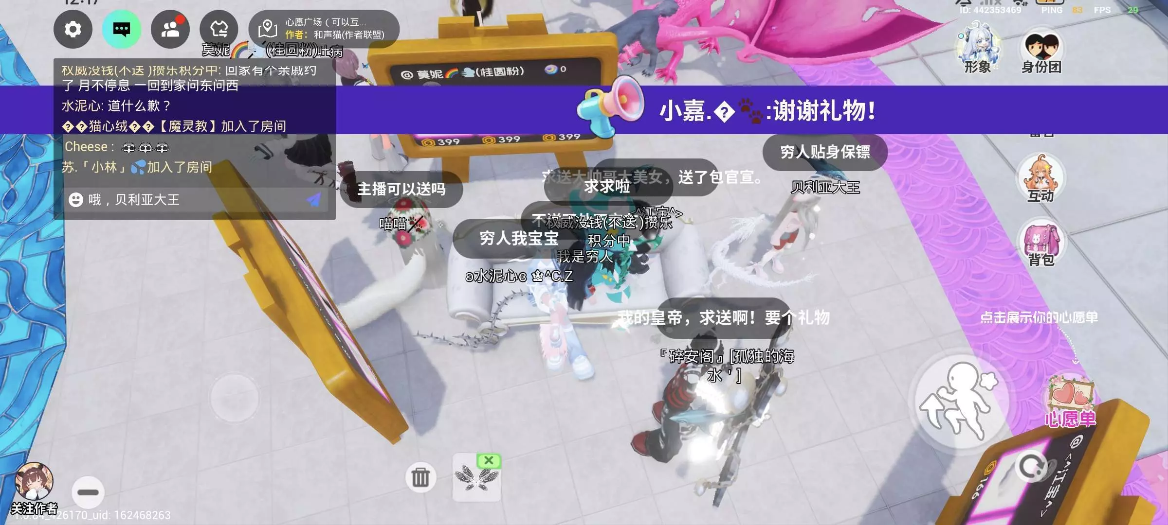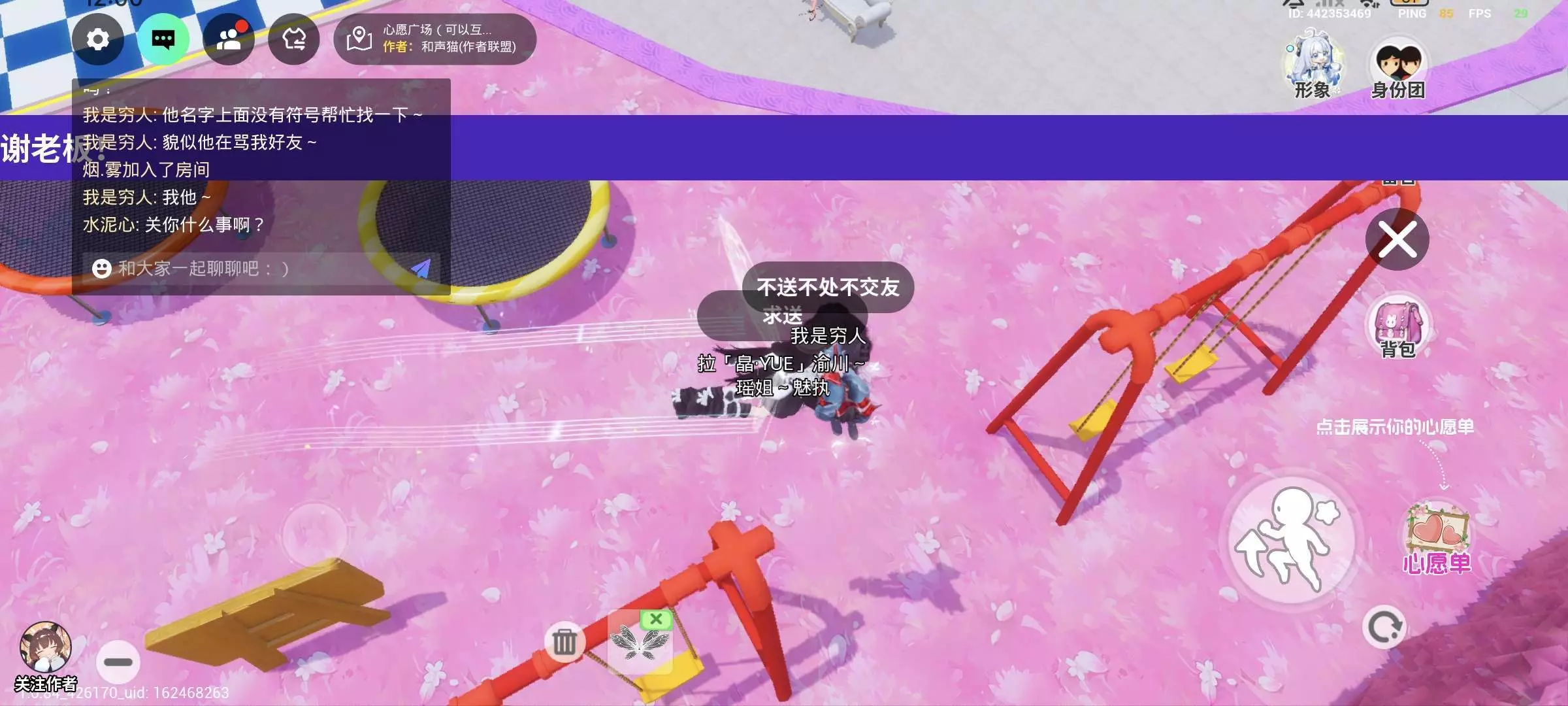 我不是给人家驱逐出去了吗,然后我就把门锁了,锁了之后他求半天我都不开门,然后他就开始对我们开黄腔(开黄腔的截图在上一帖第一张)我的妈呀,这玩意竟然开黄腔,并且他还一直堵在门口,试图进来,他就在半夜的时候搁那儿疯狂按门铃,接着呢试图从院墙上翻过去(我这个便条虽然有点矮,但是他翻不过去的)这娃急眼了好像用了个道具变大又试图跳上来,然后跳半天越跳越急,中间那一段我记不清了,但不过好像他来了个老师,然后他老师就让他赶紧走,但是我的意思是让他退,他肯定知道,但是他说我都走了,你们还这么搞我,我的妈呀你走个屁,你走 。然后他又贴我们门前面了。他老师当时训他虽然我不知道那个是他小号还是他老师,然后他老是跟我私聊,说马上就让他退,然后他当时就在我家门前右边那块儿站着,说要退了,结果在里边儿等了3天3夜了,人家都没动静,然后发现他建模没了,一看发现只是传送走了。。。死性不改。骂了半天发现这娃又过来了并且又开始试图蹦院墙,然后我和其他一些在院里的因为在院墙上看他,不小心掉下来了,我就换了一个位置建别墅,这娃没追过来了。虽然我从人家开黄腔后面就一直开始举报他但是发现毫无动静。。。。管理员,我要你给我个说法!!!!!!之后我就召集各位对小帅的恶行有目共睹的几位女生一起到心愿广场挂他,我刚进去的时候,小帅一直搁那儿加我好友,,,,所以宝宝们千万不要被猥琐男盯上哦😵
