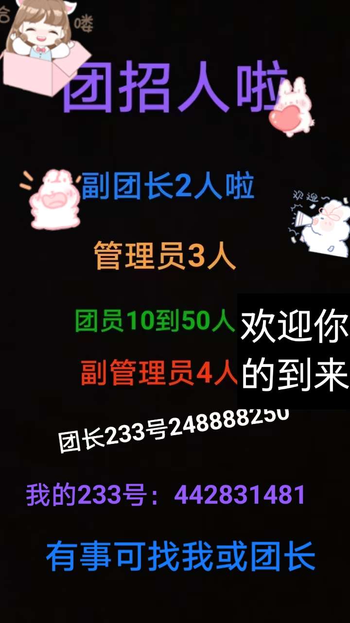 团长会给礼,我在这欢迎你们,有事记得找我哦,想加入加我好友
