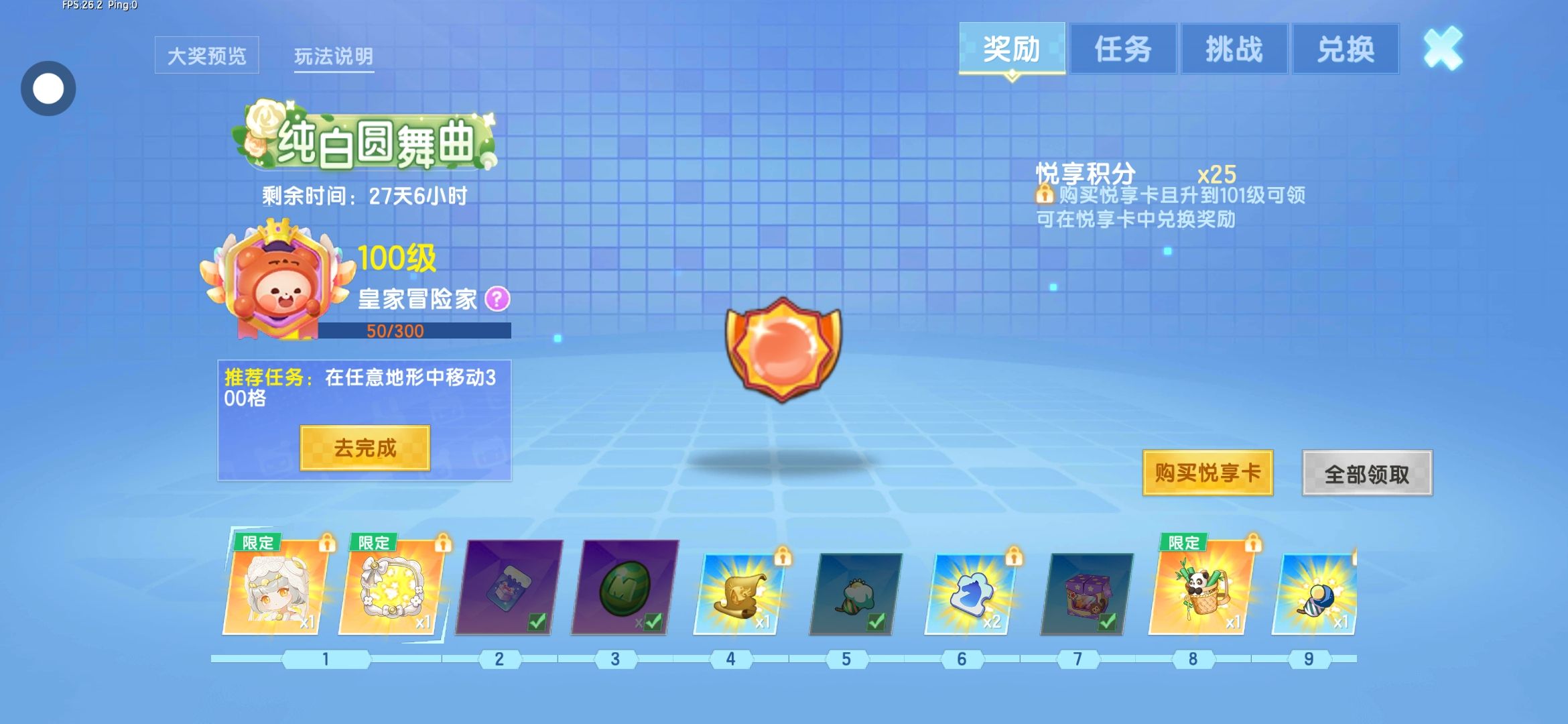 终于月享卡100级了