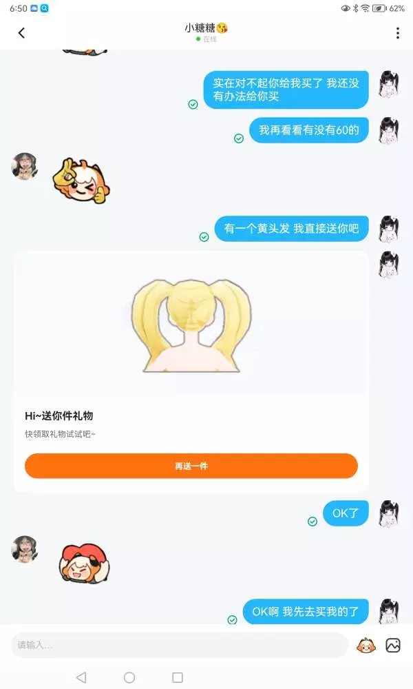 刚开始他送了我一个 然后呢 我本来打算送他那个愤怒的结果没有钱了最后送了他一个便宜点的他也很感谢我 都去跟他交友 脾气很好 很细心 打的再慢也不会催