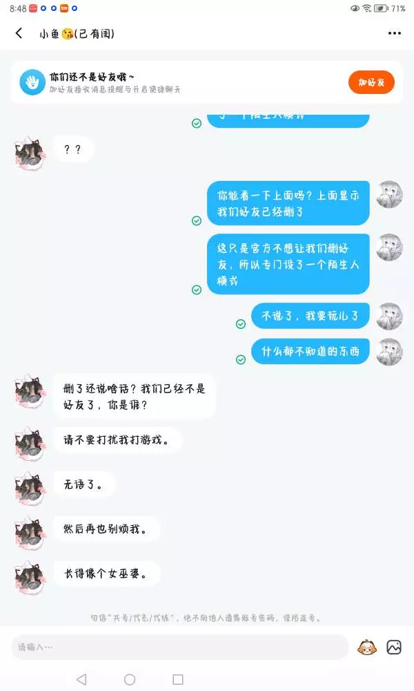 真服了,去找我绑闺蜜关系,我同意了,结果我绑了他不乐意了,真服了,避雷避雷,有会解除关系的加我一下