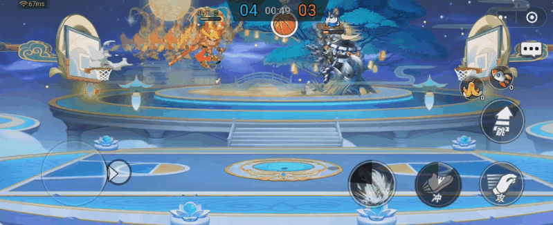 利用骑士一招打烂球宝的特性,我们可以在扣篮之后,等待球宝飞来二段跳打一下冲了之后再扣篮。