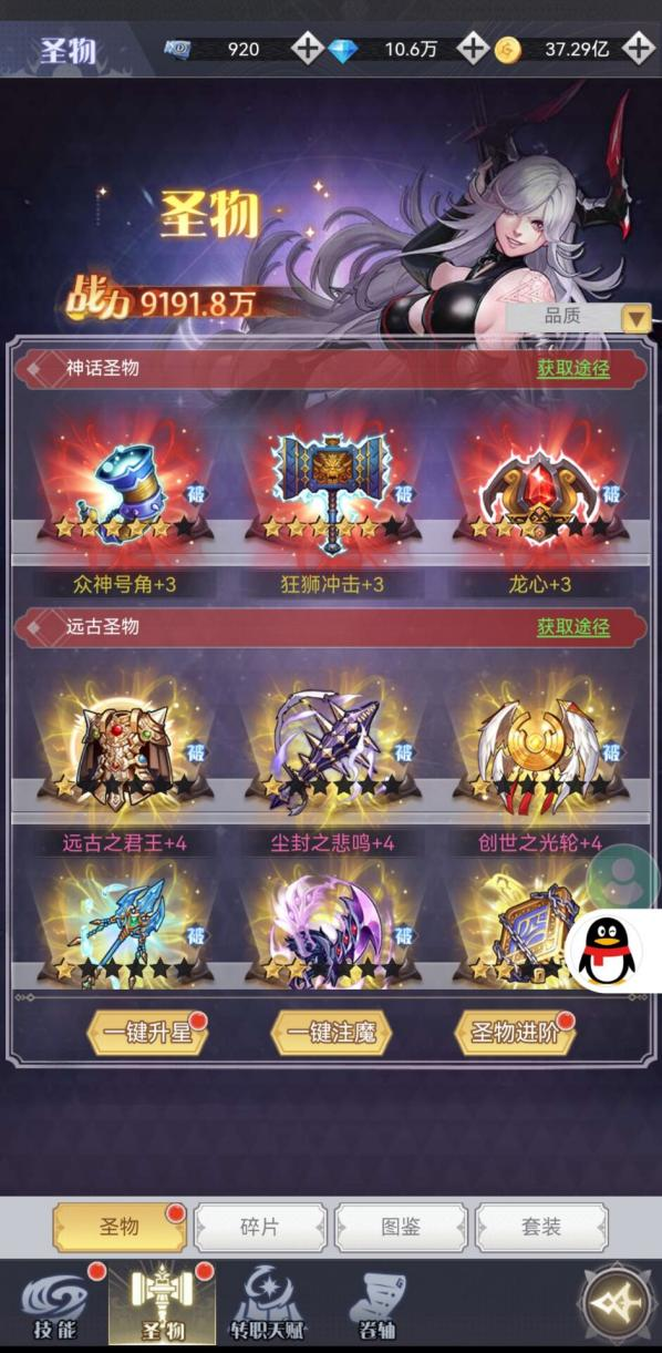 (圣物对于输出影响不是一般大,建议弄满)