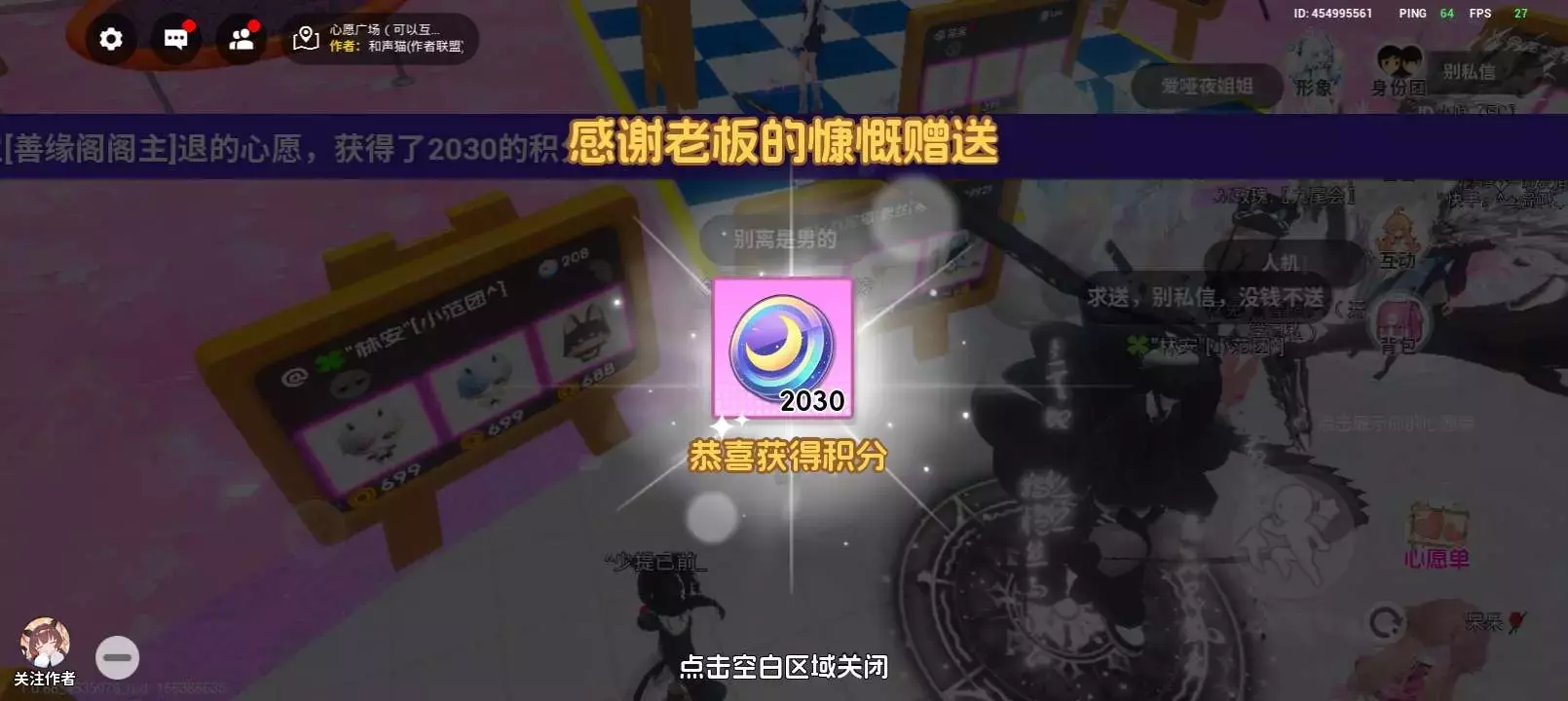 上次你拉我玩心愿广场,你也没有积分。