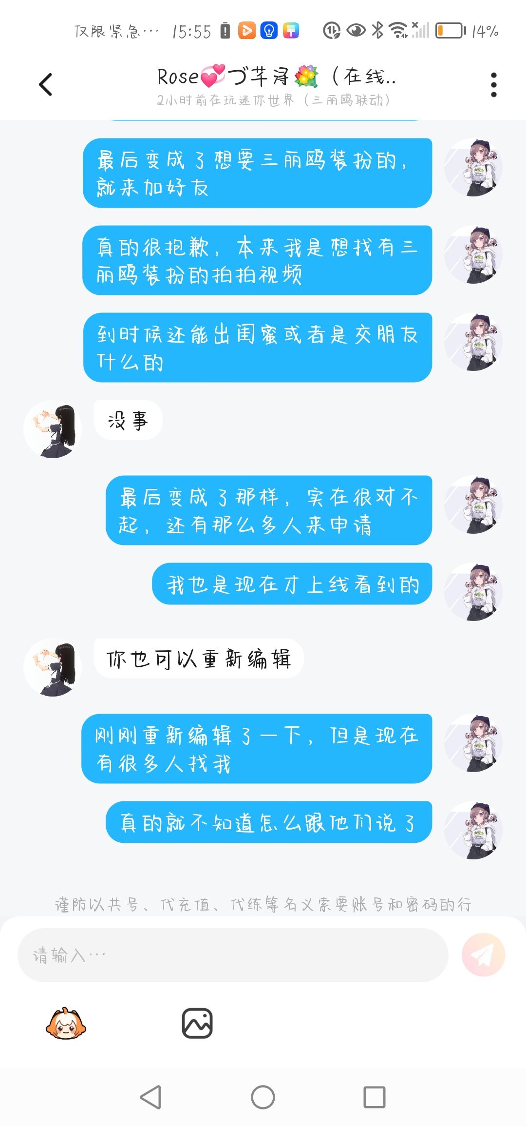 很抱歉大家我本来只是想要找有三丽鸥装扮的人一起拍视频或者是处闺蜜,但是却输入错了而且也有这么多的人信任我真的很对不起大家在这里,我向你们真诚的道歉