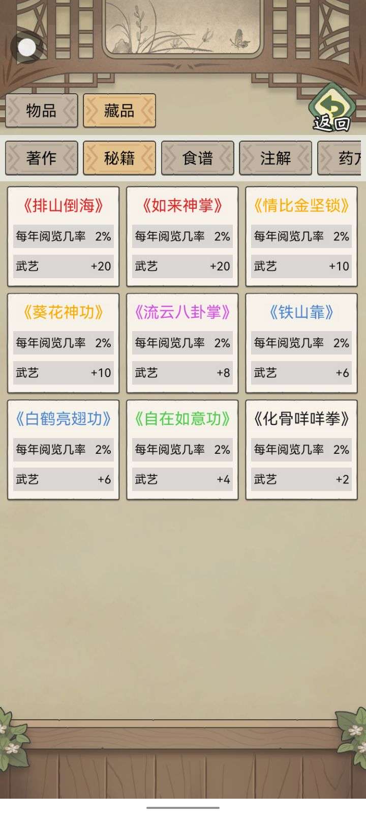 书籍什么的感觉都全了,但和单方一比,好像还缺很多,玩这么久也是有一品官了QAQ,就是还没有到修仙的剧情,难道还得篡位?