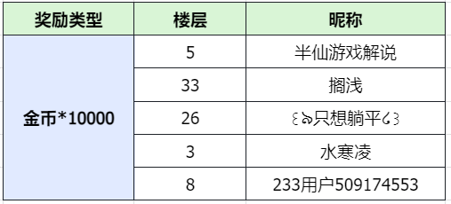 注意:道具奖励开奖人数≥20人,实物活动开奖人数≥40人。