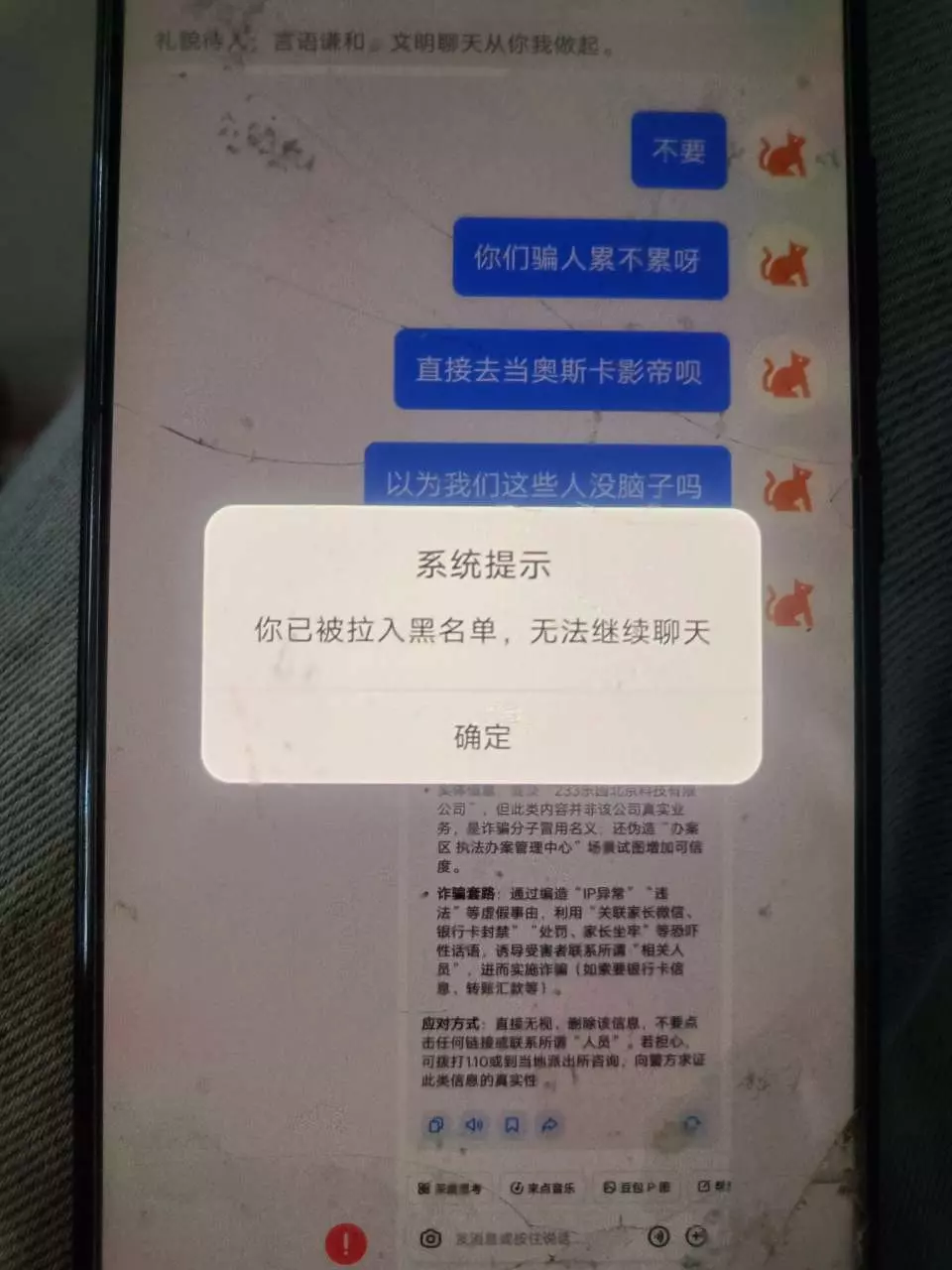 先会有一个人加你好友你乐币,然后让你下载密鸽Aⅰ这个软件不能截屏 ,然后他们会给你一个二维码 你扫一下然后进行诈骗 就是我艾特的这个人 😂😂😂 @违规用户