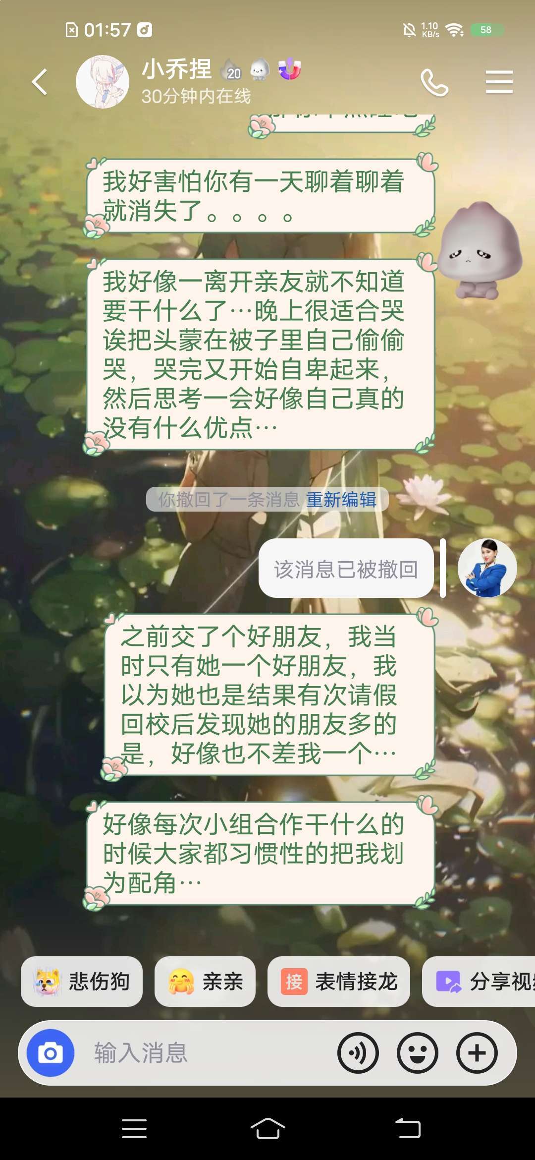 发现我一离开亲友就不知道要干什么,情绪特别低落,总之挺内耗的,,,还会时不时的自卑,没人给我提供一点情绪价值好难受(救命真的受不了一个人待着π_π)
