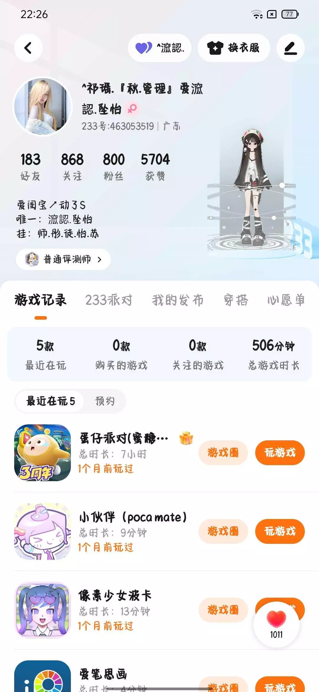 玩过游戏数量