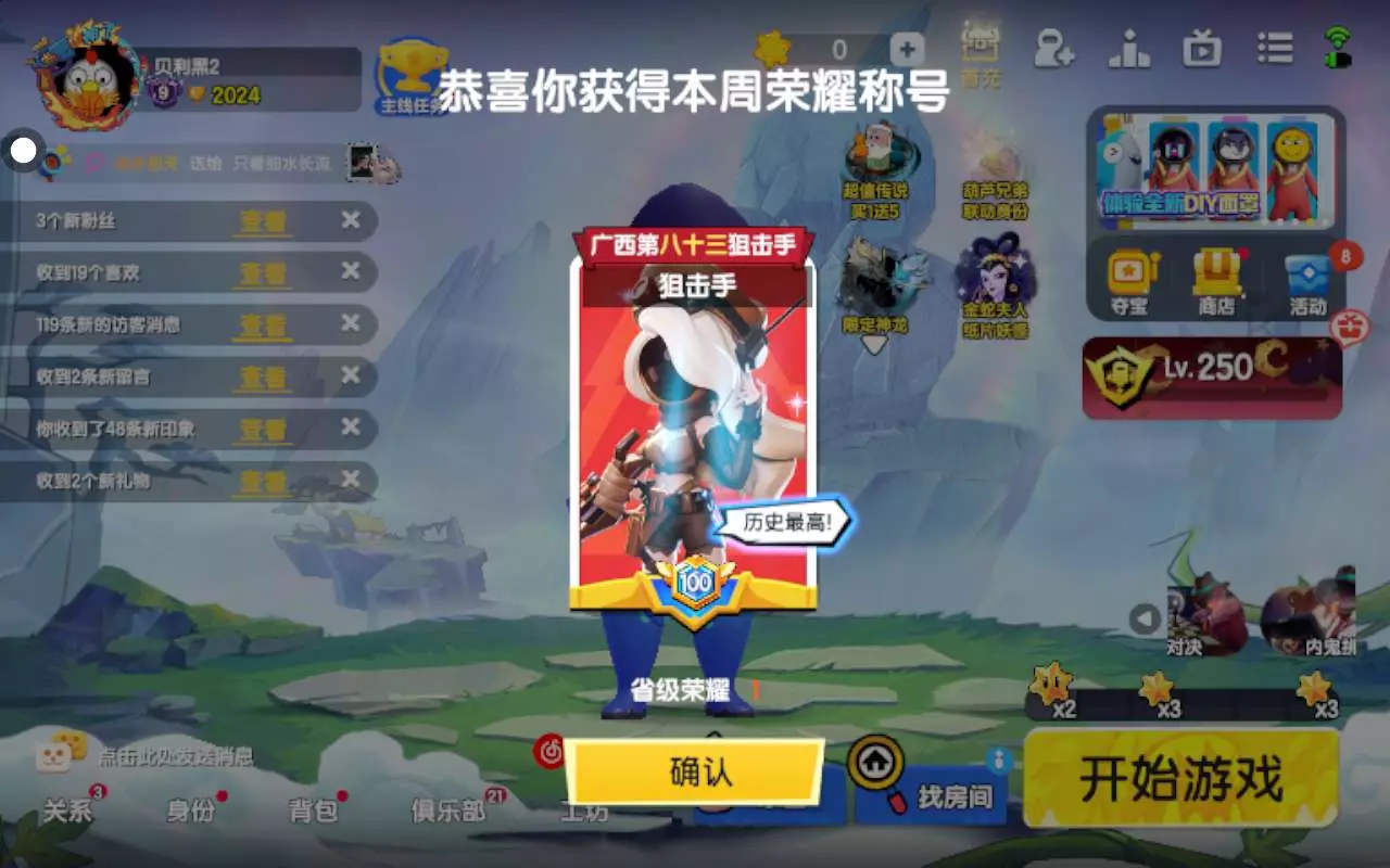 上线发现葫芦娃已经联动了,然后我就领取了大娃的皮肤,结果我换好之后