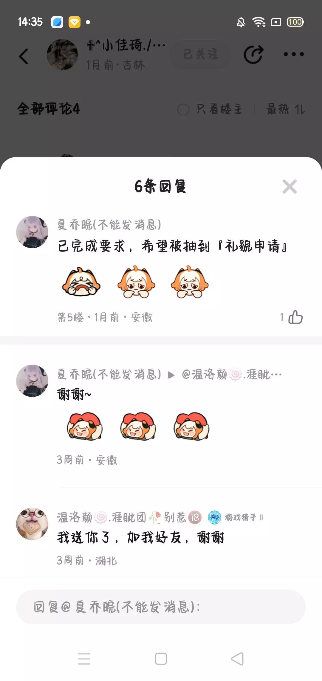 〈苏〉清好友 〈若〉不送、不加 〈雪〉求送礼~