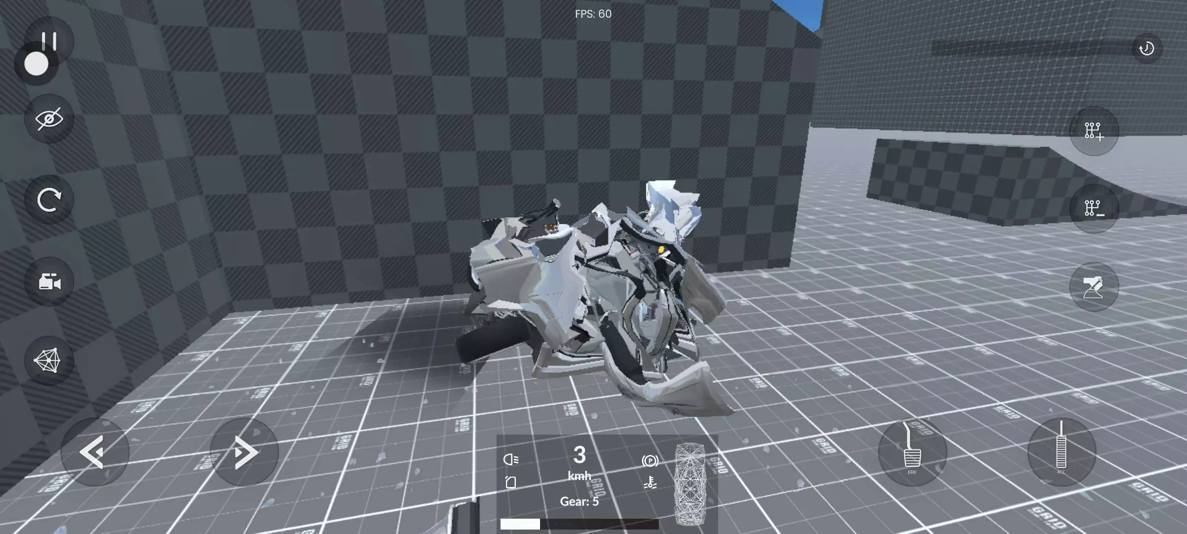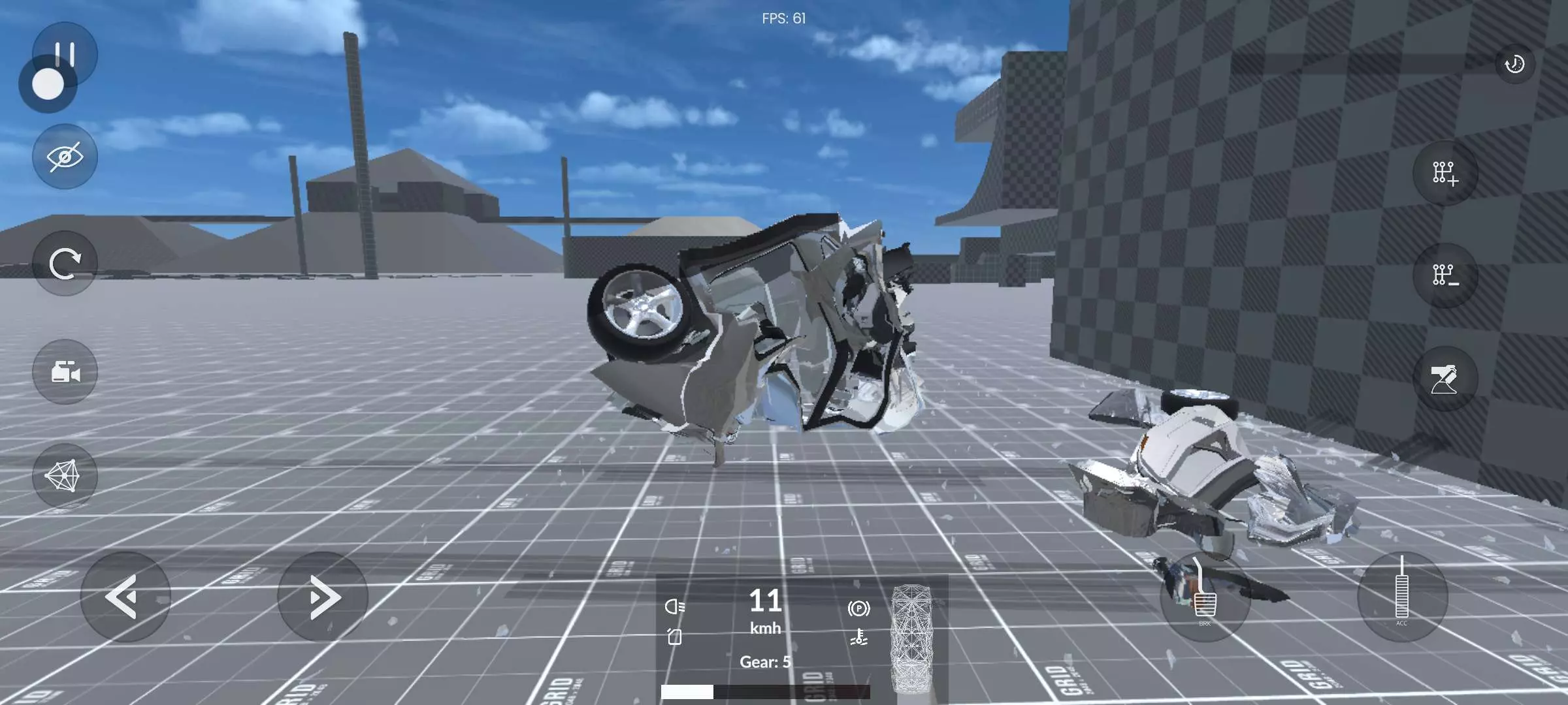 只需要点旁边的档位加一直点,然后就可以加速到200千米每小时,然后撞上一面墙就完事了