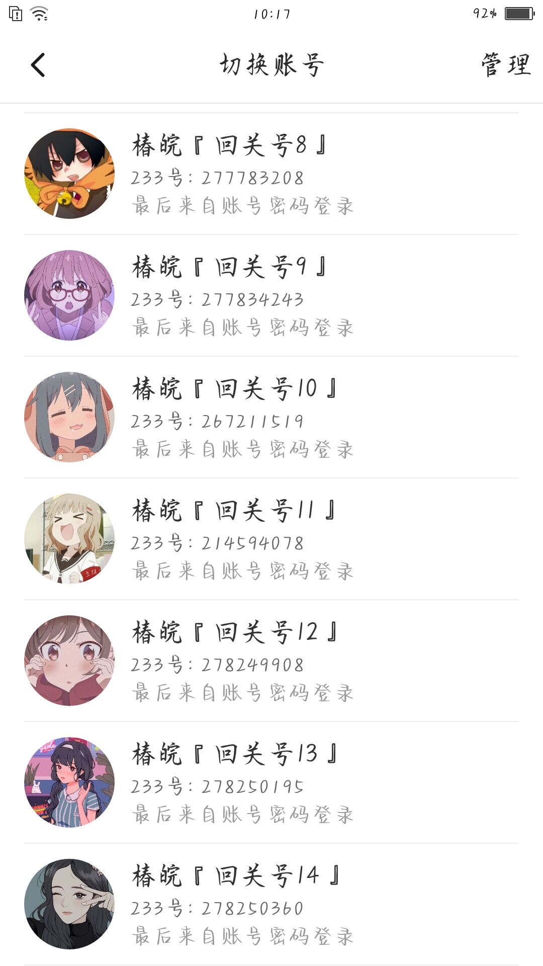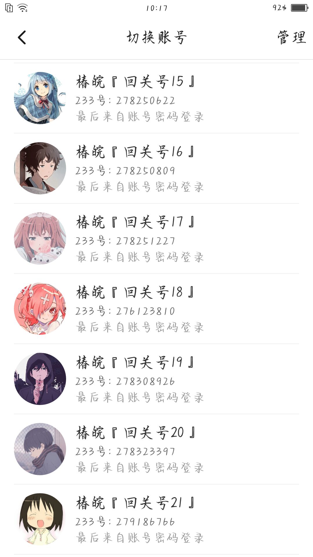 70多个回关号回关