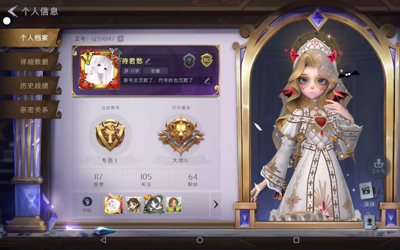 可能长时间不上线,这四个号都是我的,还有三个号不常玩就不说了,可以当背包,技术的话很难评,绝对不忘本,顶多感叹一下