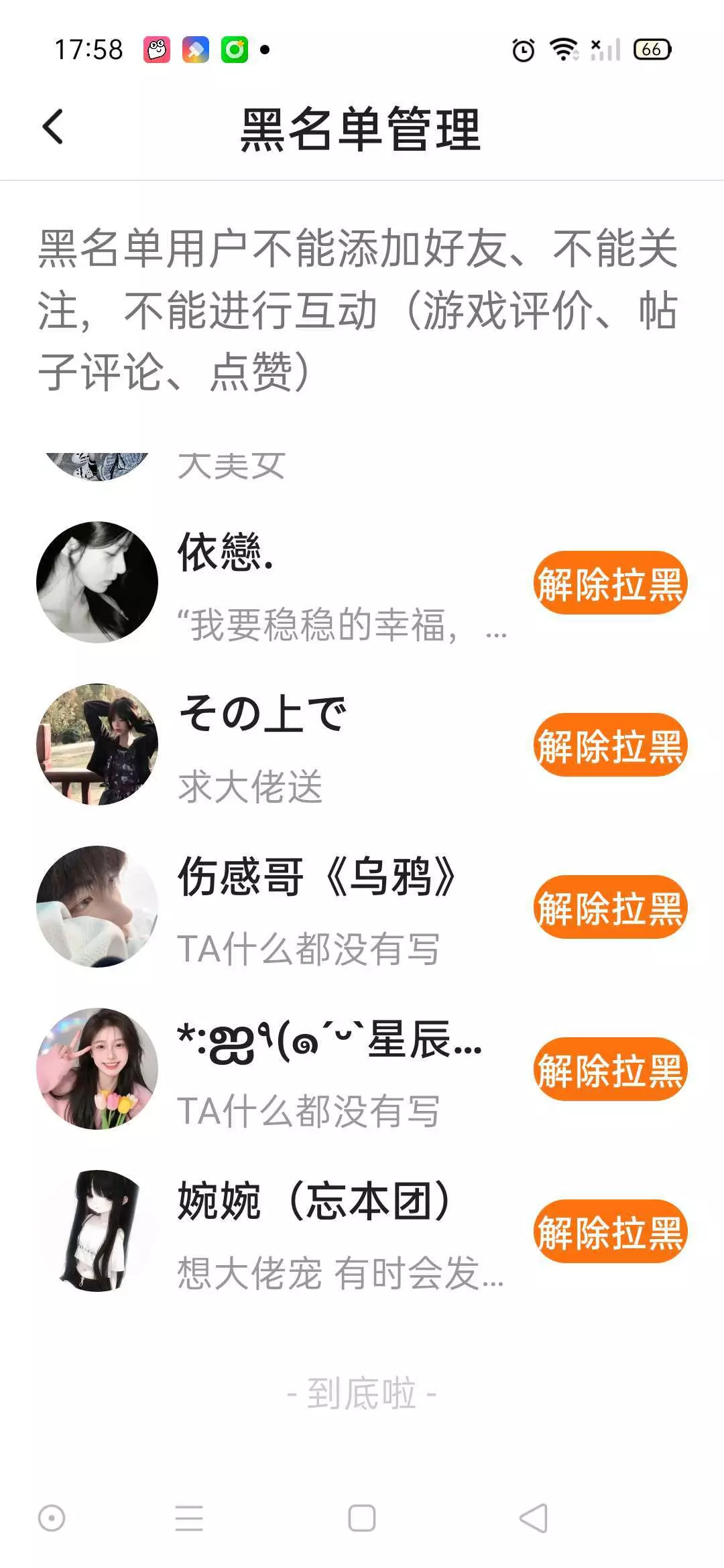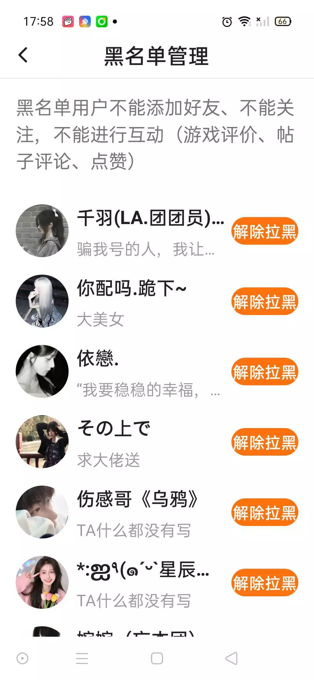 只要骗我说你我要举报你,我当然会拉你啊,但是有的对象也拉黑了,伤感哥那个