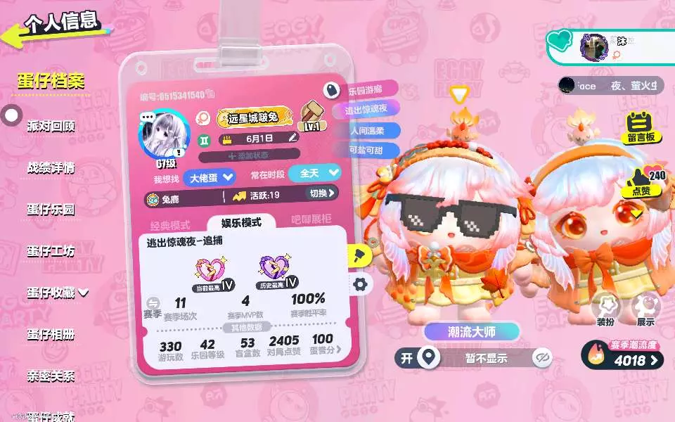 有没有一起玩蛋仔的?寻宝、惊魂夜都可以。