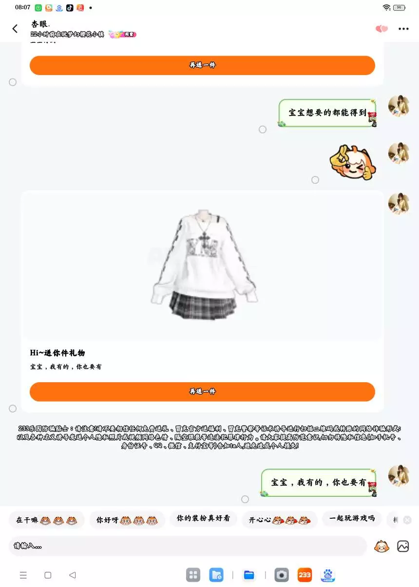 我在这里是公开说一下TOT你的礼物我暂时没钱给你,等到我,过寒假的时候吧,我的星期六星期天