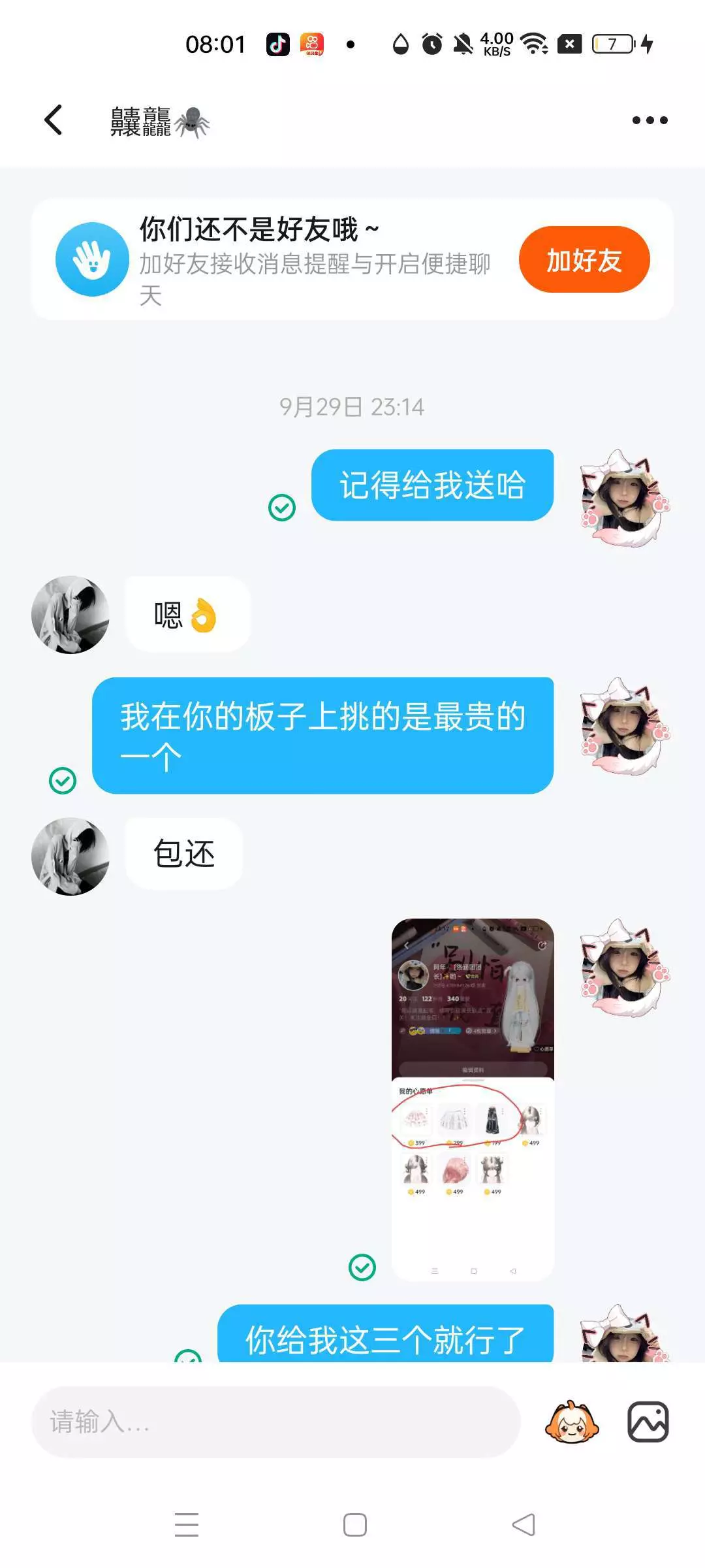 大家不要再找他要礼物了!!!我给他送了一个1000金币的礼物他给我不送,而且是说好的给我送的!并且还说昨天送我!😑