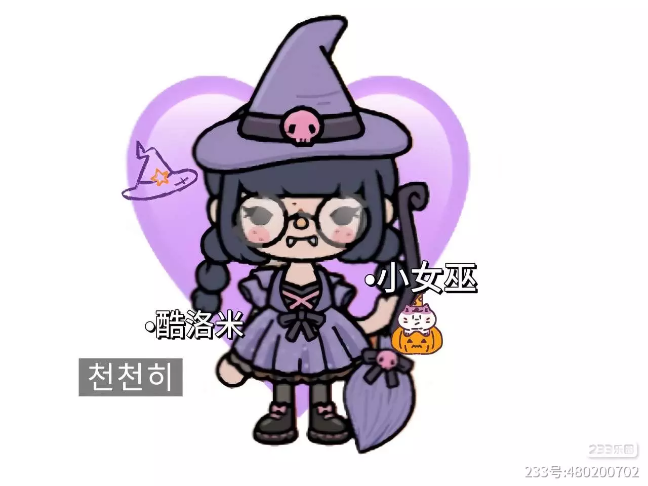 这一套呢也是紫色系,但是更酷了。发现没,这就是官方在邮局更新的新酷洛米装扮,十分的酷,这一套我给到了酷酷的种类,想必大家看五官就看出来啦。五官其实也很萌,也许是那个小牙影响了呢,不过这才是真正的万圣节主题呢。
