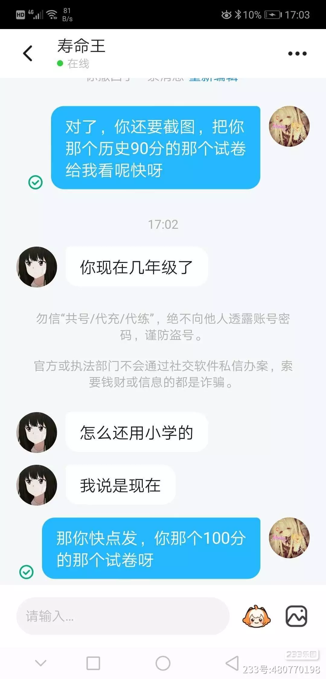 粉丝到50万就送,他还说你自己能破50万吗?我就觉得有点奇怪,他说,都没有送礼的人,怎么可能觉得会有50万呢?不是我也送过的呀,他还跟我打PK比知识,我发完图后,他就不发他的图了,他说他还有一张100分,他他就编个理由不发