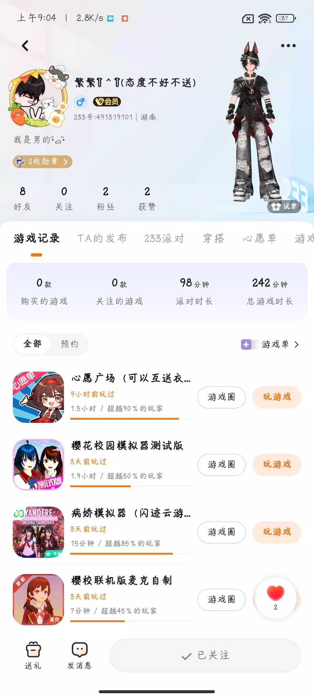 玩过游戏数量