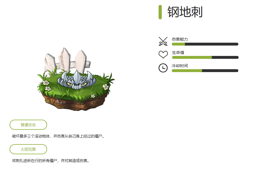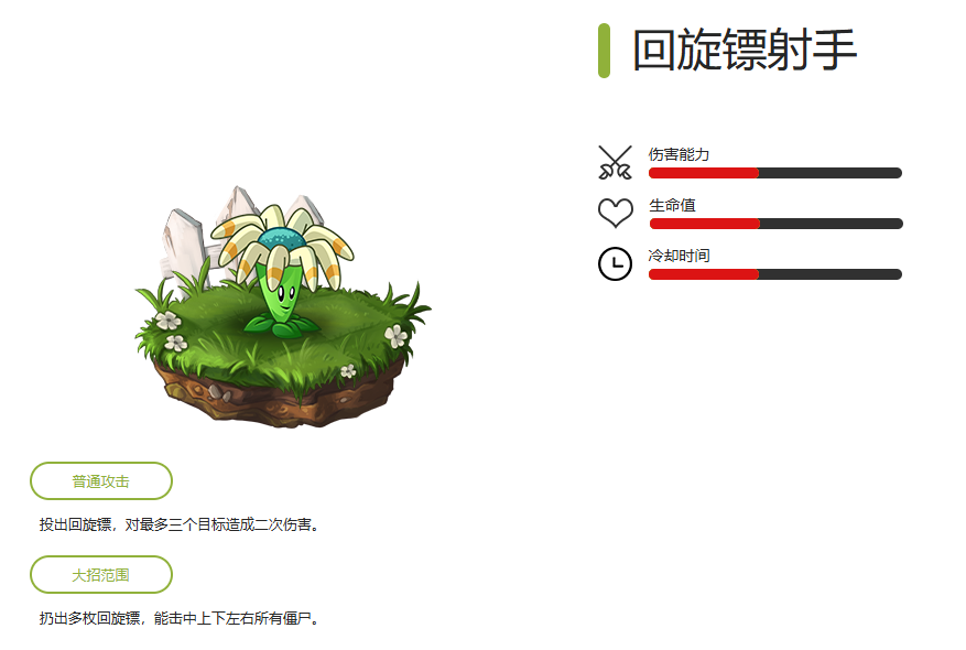 拥有强力的攻击力,对一路僵尸造成伤害,且大招能击飞一切中小体型僵尸,在无尽中也被广泛使用。
