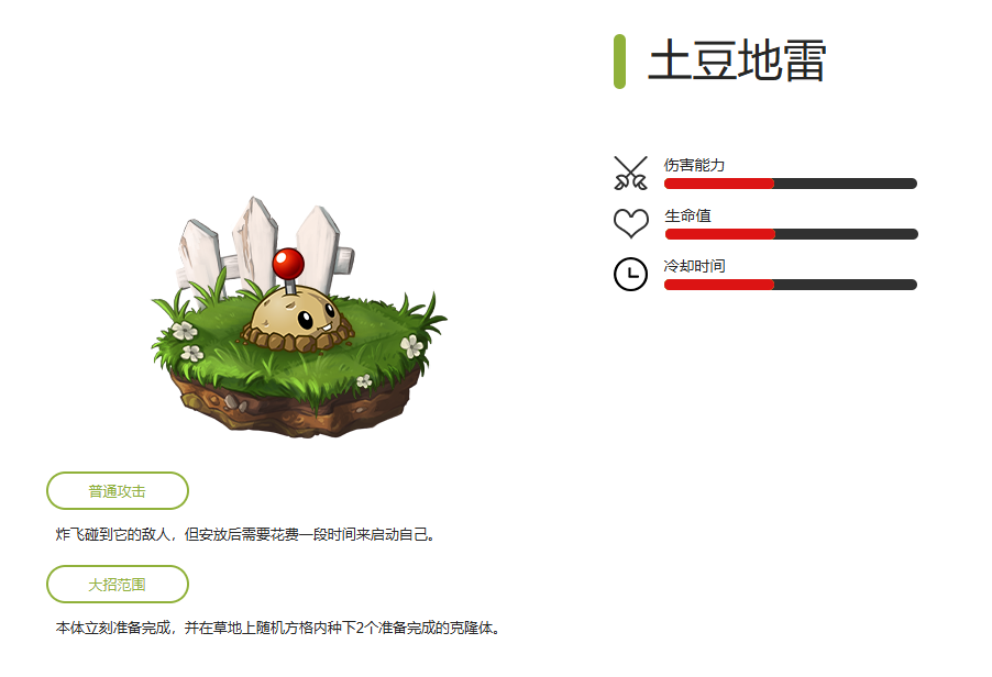 四阶技能:攻击力.上升至175/发,种植时有60%的概率释放大招。