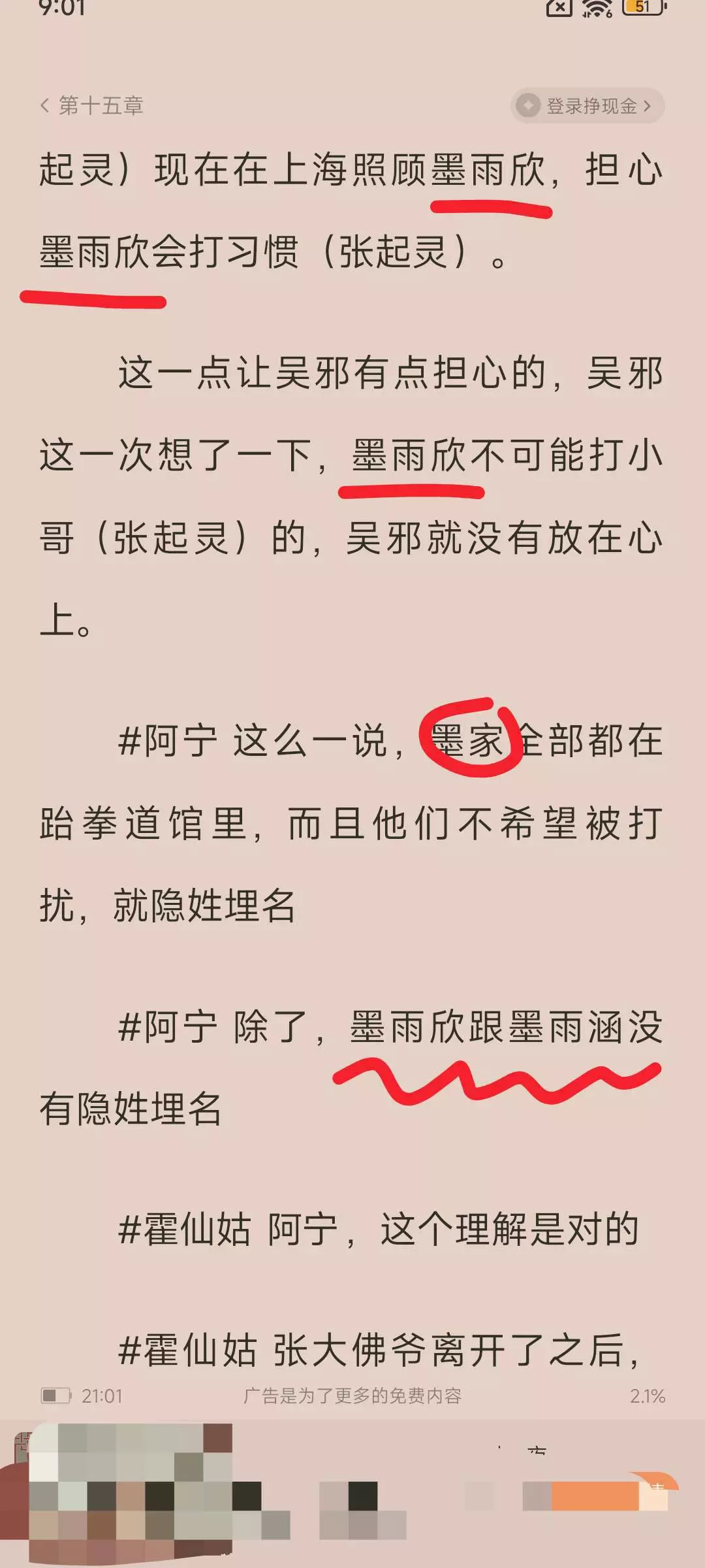 在最后那里还写上了张起灵跟墨雨欣接吻 -_-||