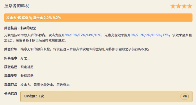 角色池只会出现3、4星常驻武器。