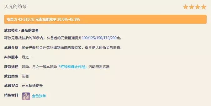 每次祈愿得到4星武器,获得 无主的星辉 × 2 ,得到5星武器,获得 无主的星辉 × 10 。