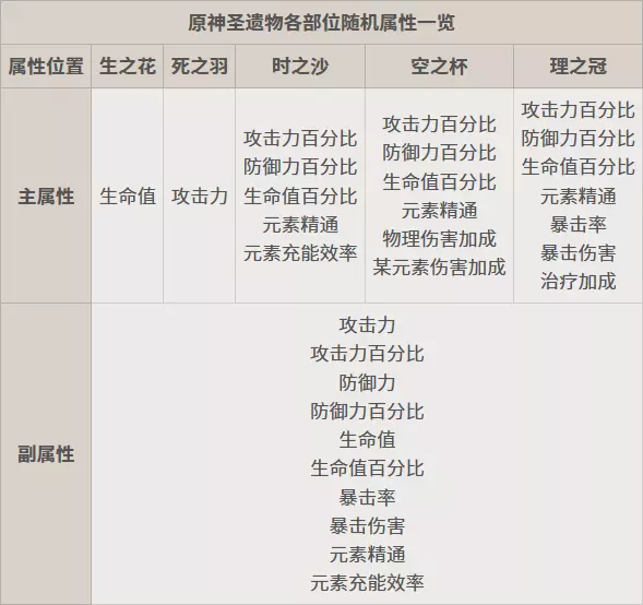 注:原神圣遗物的主副属性词条,均是四舍五入后的数值,并非精准值。