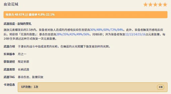 在新国家推出时会更新本国的限定4星武器,它们只能通过限定祈愿和对应国家的集录祈愿获得。