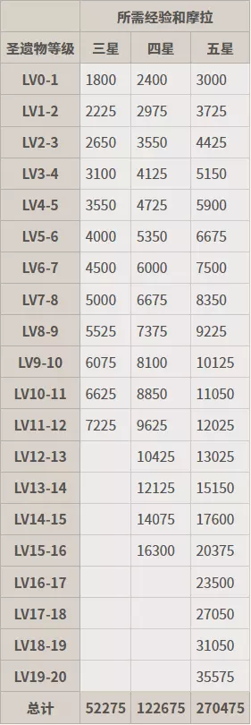 不同稀有度圣遗