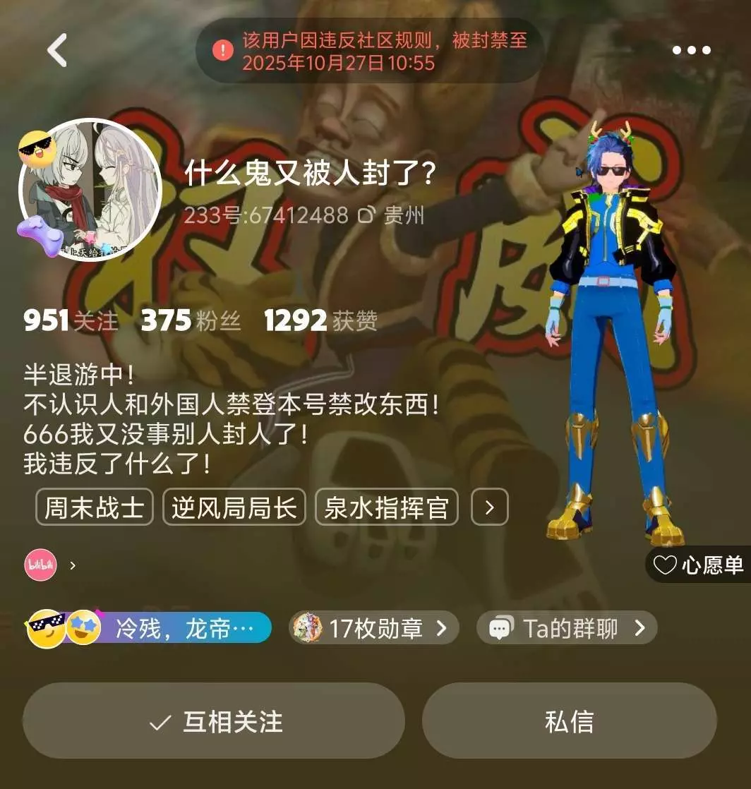上面这几位都因封号原因未知,也并未做出违法违纪事件,第四张原为233官方,为何也被封若他是假的那其他不知情者不该同样封号!还请官方写明封号原因,不放过一个该封号者也不冤枉一个好人!