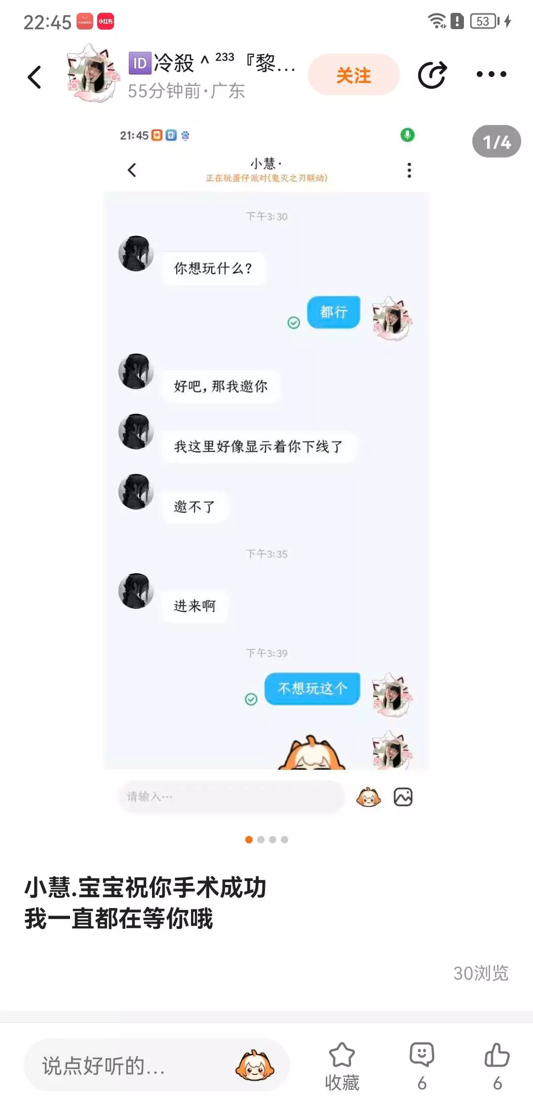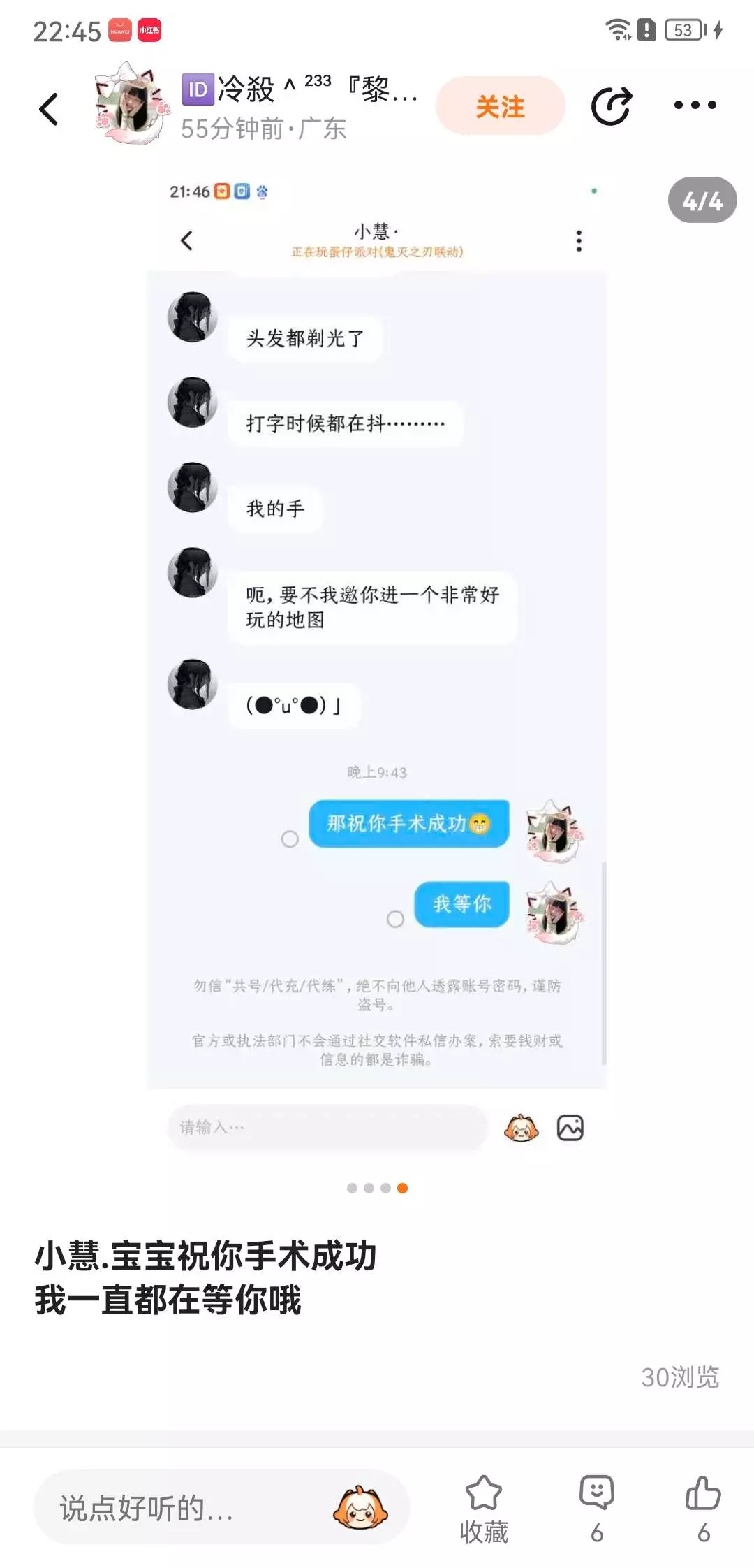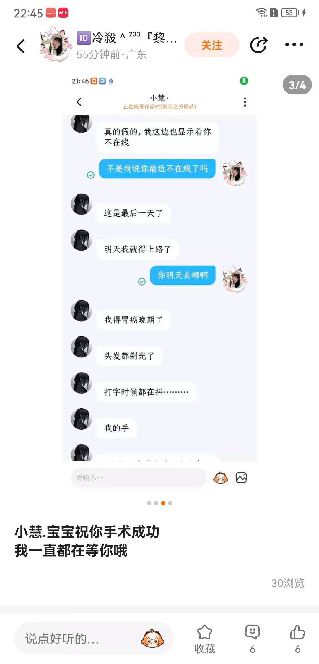 请祝她早日康复吧