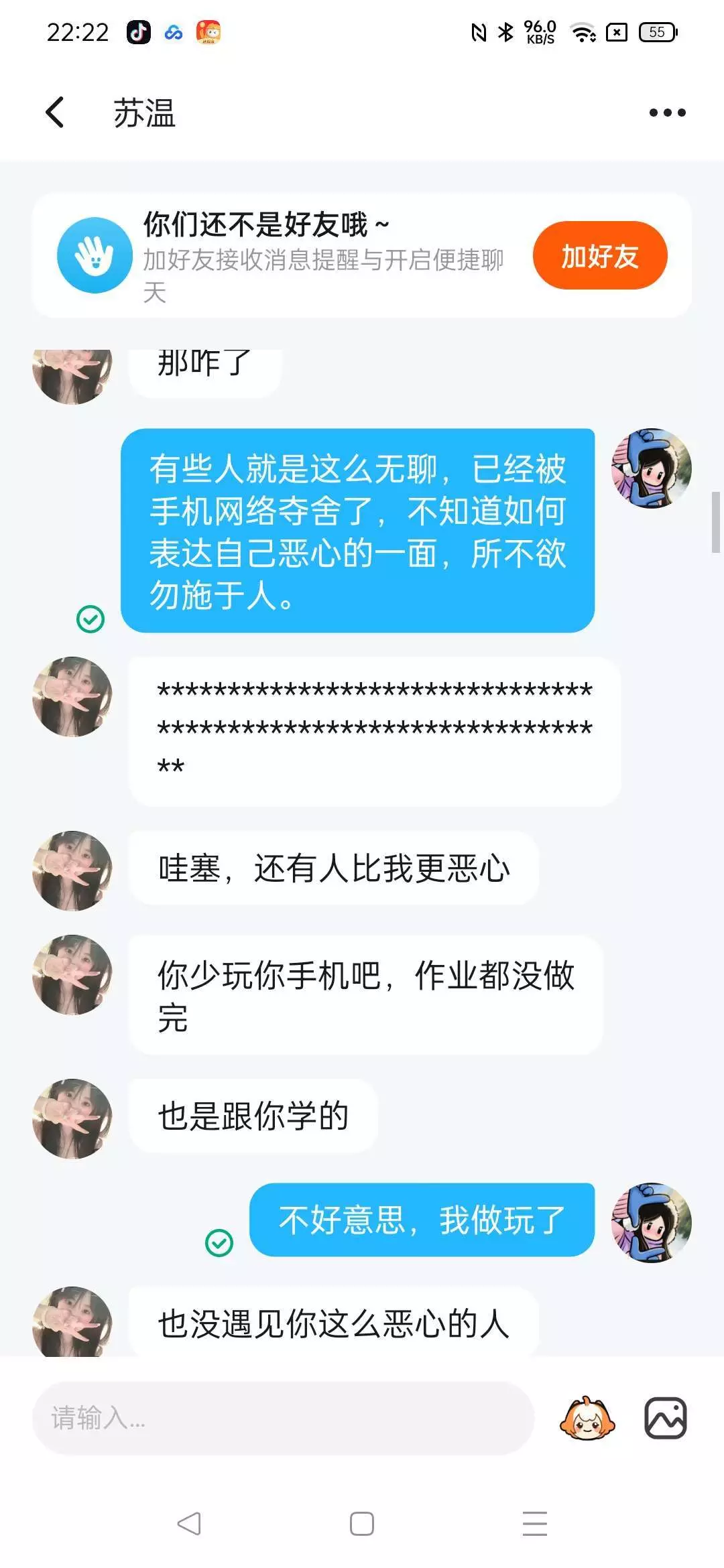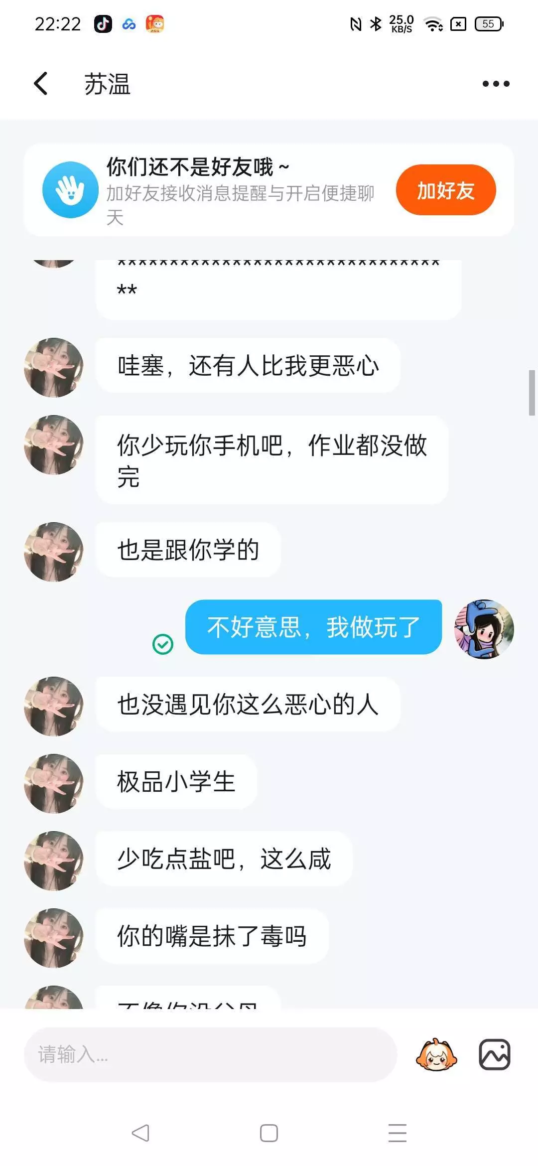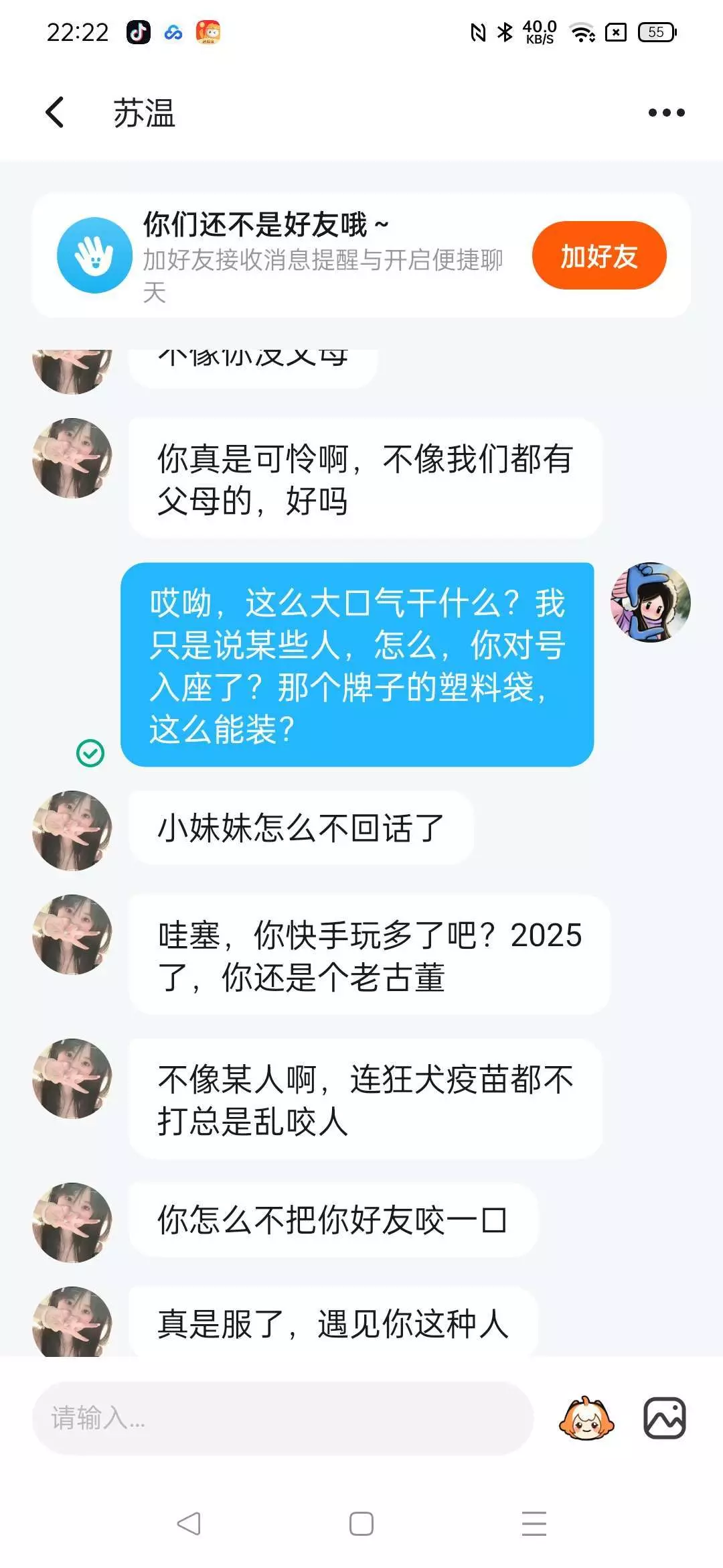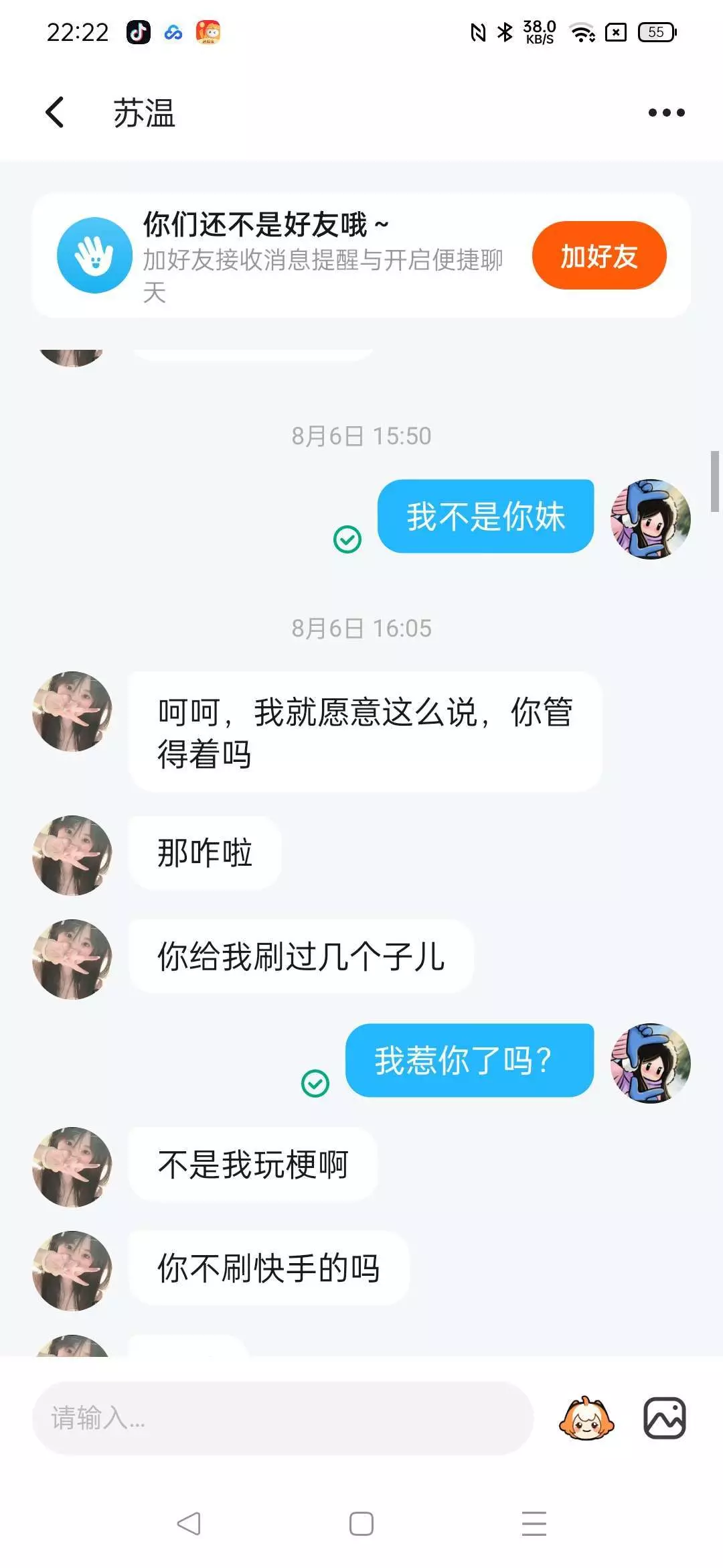 我们好像没惹她吧?第四张明显显示了她没事找事,我们只是说明我不是她的妹妹,有什么问题吗?