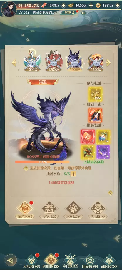 · 挑战强大的世界BOSS,获得稀有奖励和成就。